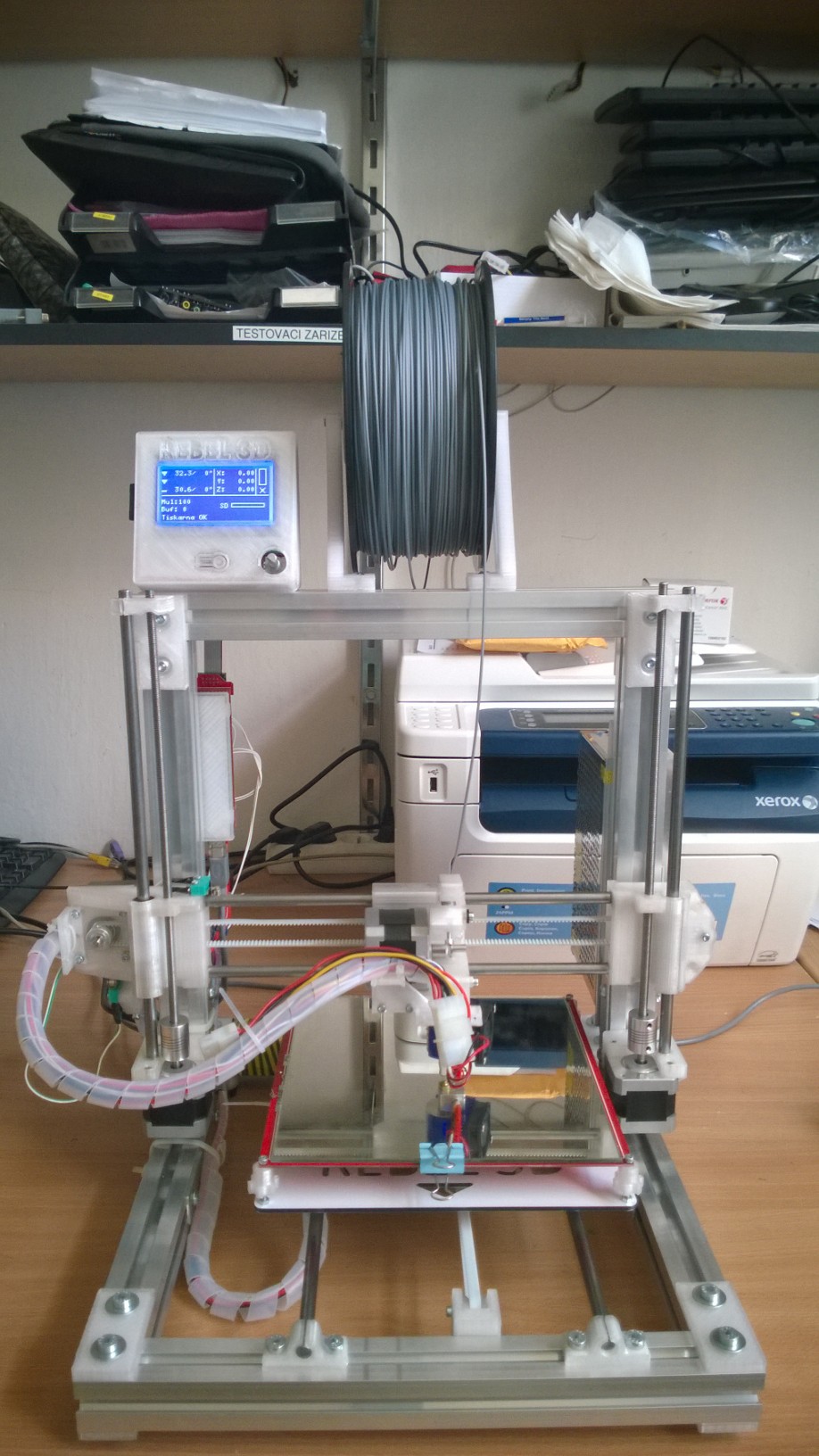 Konstrukce Prusa i2 ,Rebel 2 ,PEEK hotend 3mm i 1,75mm vlastní výroba ,Marlin , Ramps 1.4 ,motory Microcon SX17 -0905 ,KISSlicer64