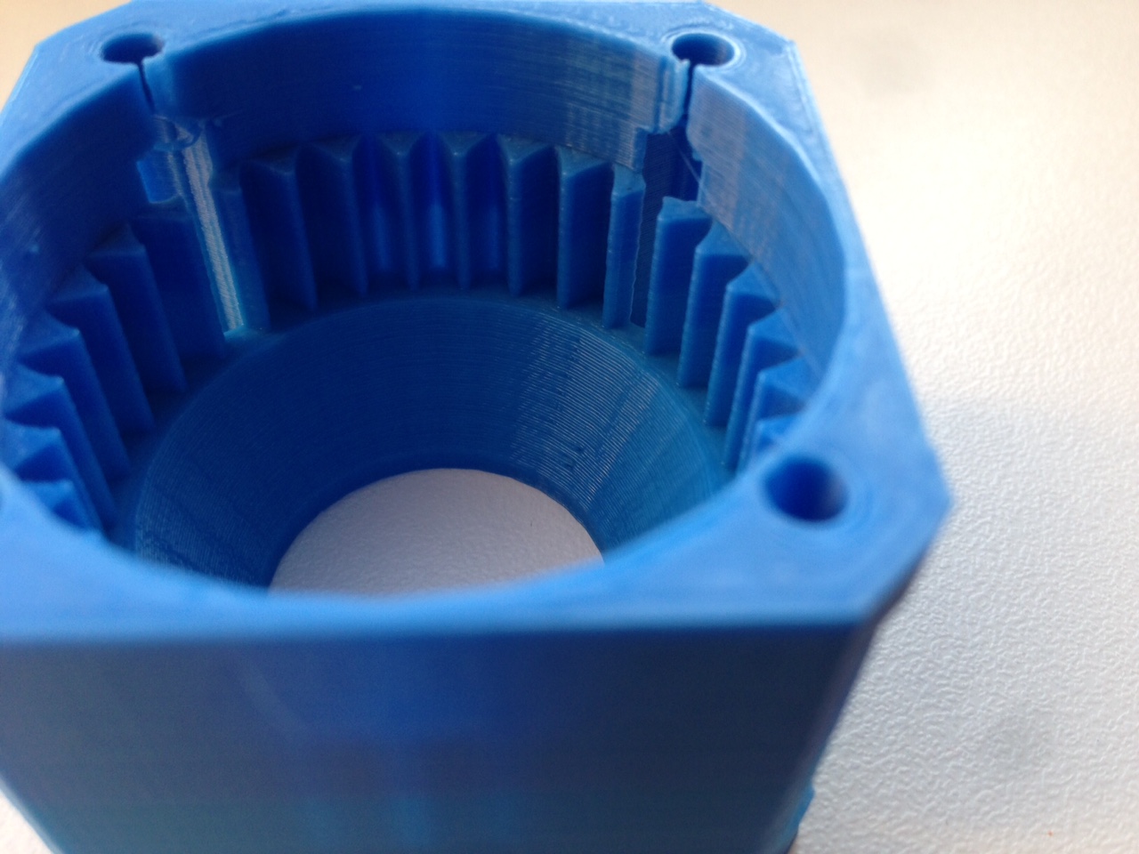 No, zkusím to ještě jednou. Zatím jsem nastavil kroky na 1/16, ale stejně je povrch proti světlu hrbolatý. Tiskárna je ale hlučnější. Vzhůru dolů!