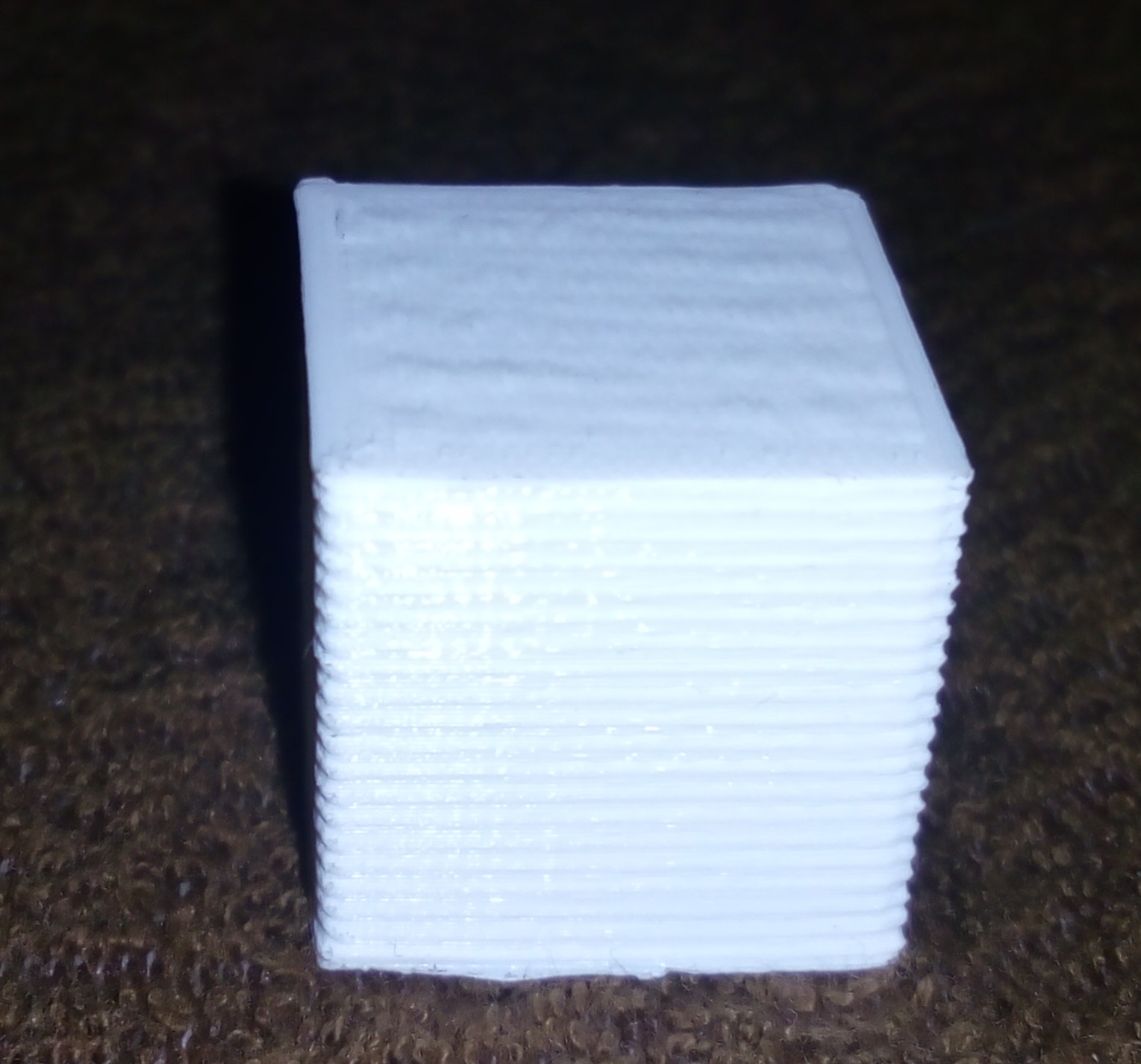 po delším čase, kdy jsem tiskl jen předměty o max výšce 2mm, jsem potřeboval vytisknou něco vyššího. Zjistil jsem však, že mně se mě vertikální stěny po vrstvách vlní. Vždy to udělá 2 vrstvy dobře a pak vlnu. Nejvíc to je vidět na rozích. Je to PLA, teplota 200°C a rychlost 40mm/s. Tisknu tryskou 0,3mm a vrstvy 0,25mm. Rychlost, teplota a ani výška vrtvy na to nemají vliv.