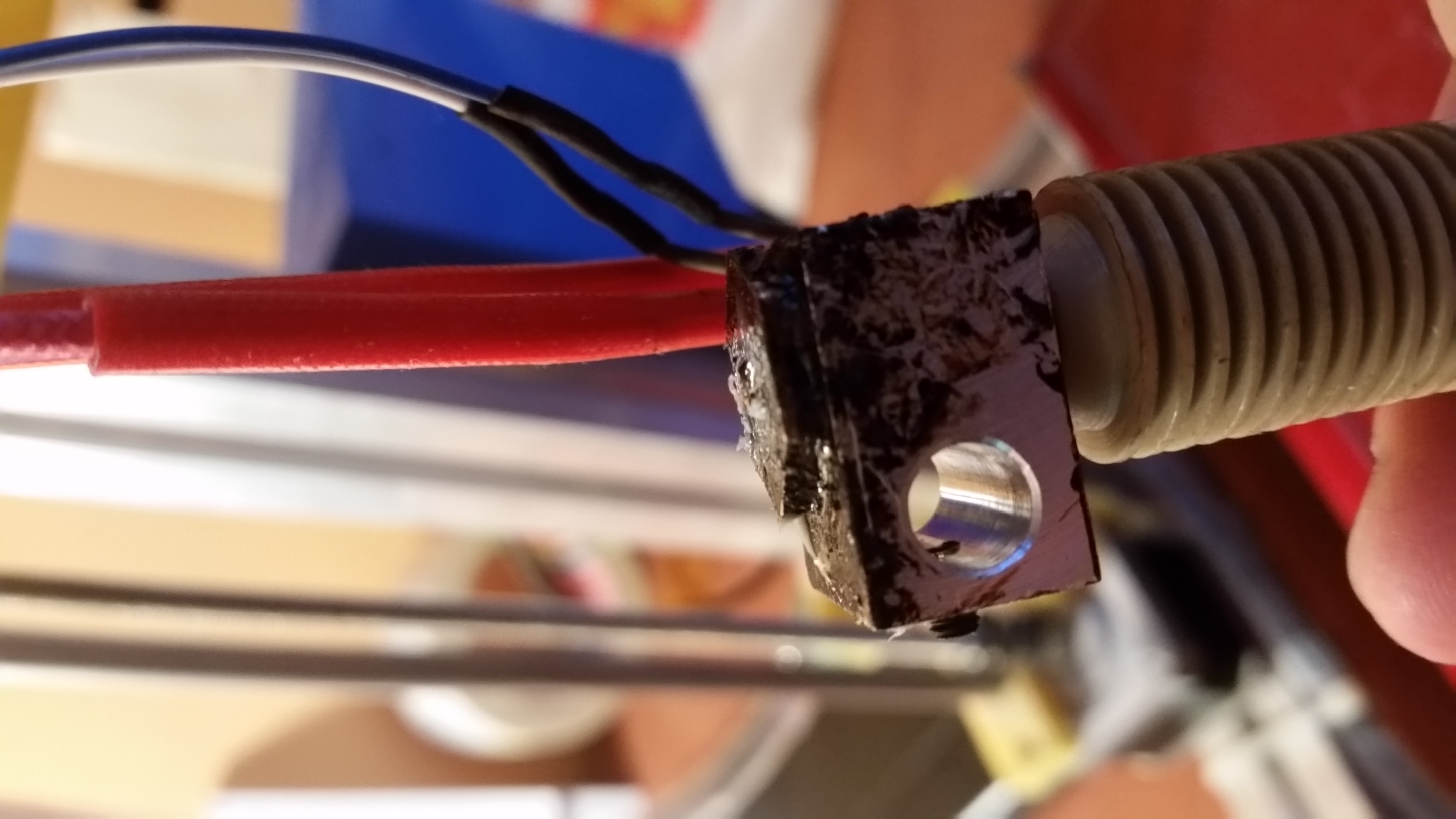 Niektory daju na heatblok aj tenky pasik kaptonu s tym sa da ustrazit aby pripiekol material na heatblok