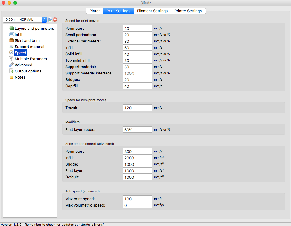 Natrafil som na malý problém pri nastavovaní rýchlosti. Môžem rýchlosť nastavovať ako chcem, vždy od 60 mm/s a vyššie tisk trvá stále rovnako dlho. Proste mi slicer nechce povoliť rýchlejší tisk. Stretol sa s tým už niekto? Mám slicer 1.2.9