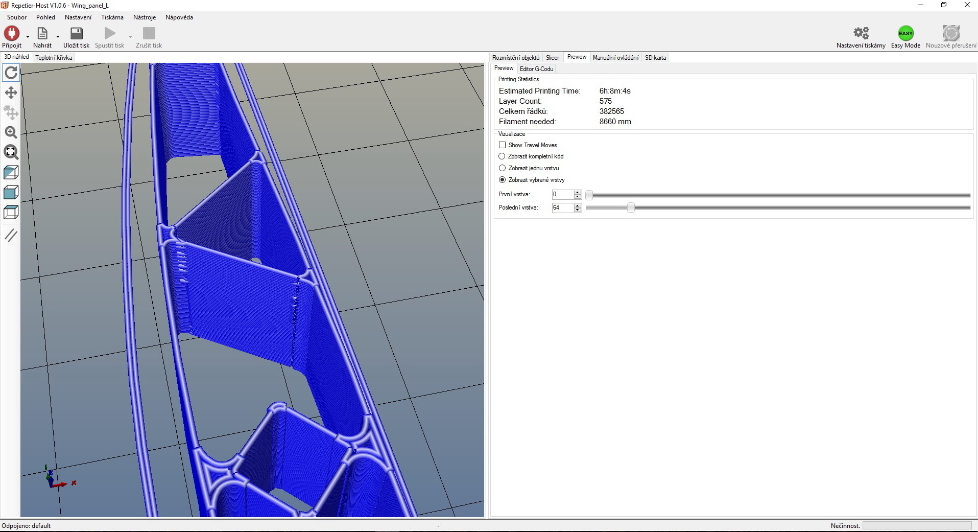 Rád bych zkusil si vytisknout létající model, ale Slicer mě špatně vygeneruje G kód, křídlo je bez potahu. Má někdo radu?