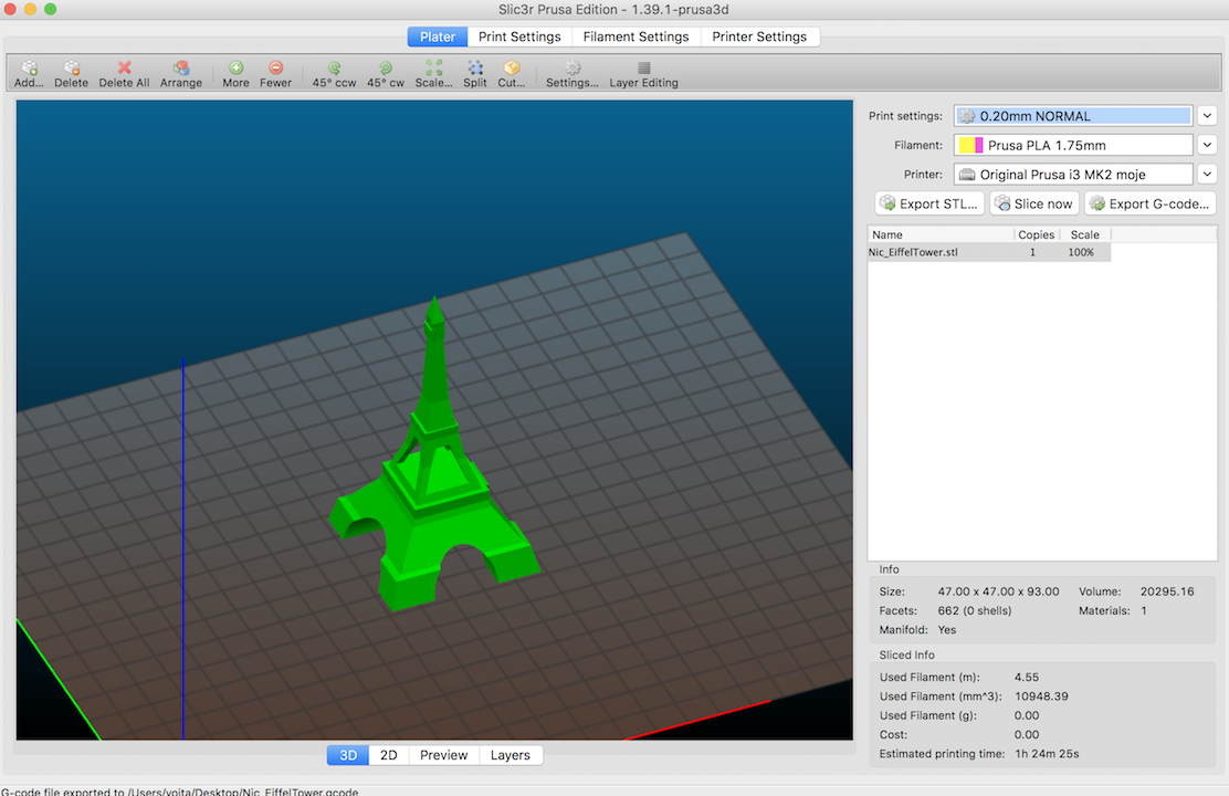 Můžeš sem hodit .STL, G-CODE případně i nastavení Slic3ru