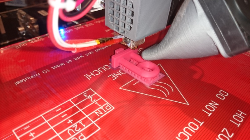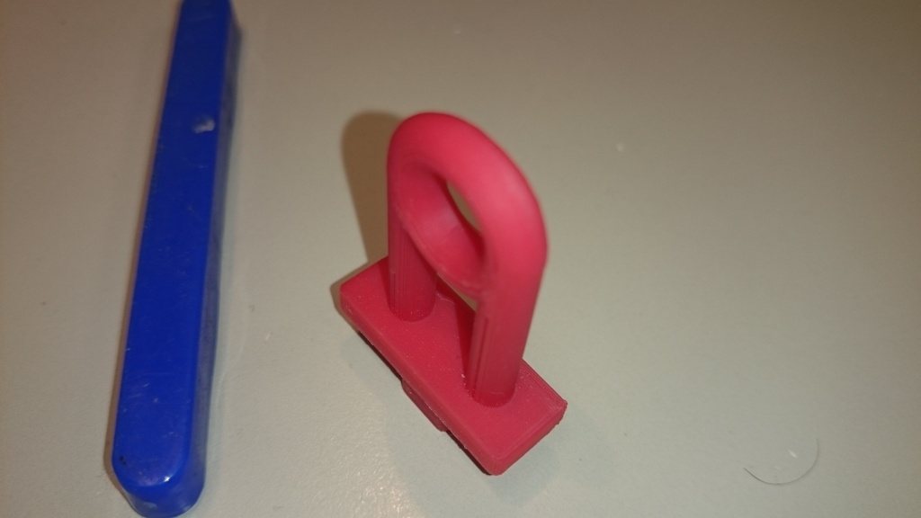 Ovšem tisk válce průměr 5 mm na ležato a ještě na podporách, to je přímo běs. Vždy to skončí že spodní polovina válce je v řezu hnus skoro trojůhelník, horní je celkem OK. Dávám to sem jen jako zajímavost, jestli někoho napadne, jak to vytisknout. Nejspíš tu spodní část pro obě ouška přemaluju na obdélník stojící na skle, na tvaru vlastně nesejde. Ale ten háček nemá řešení. Otáčet vše o 90 st by asi nemělo kvůli vrstvám požadovanou pevnost.