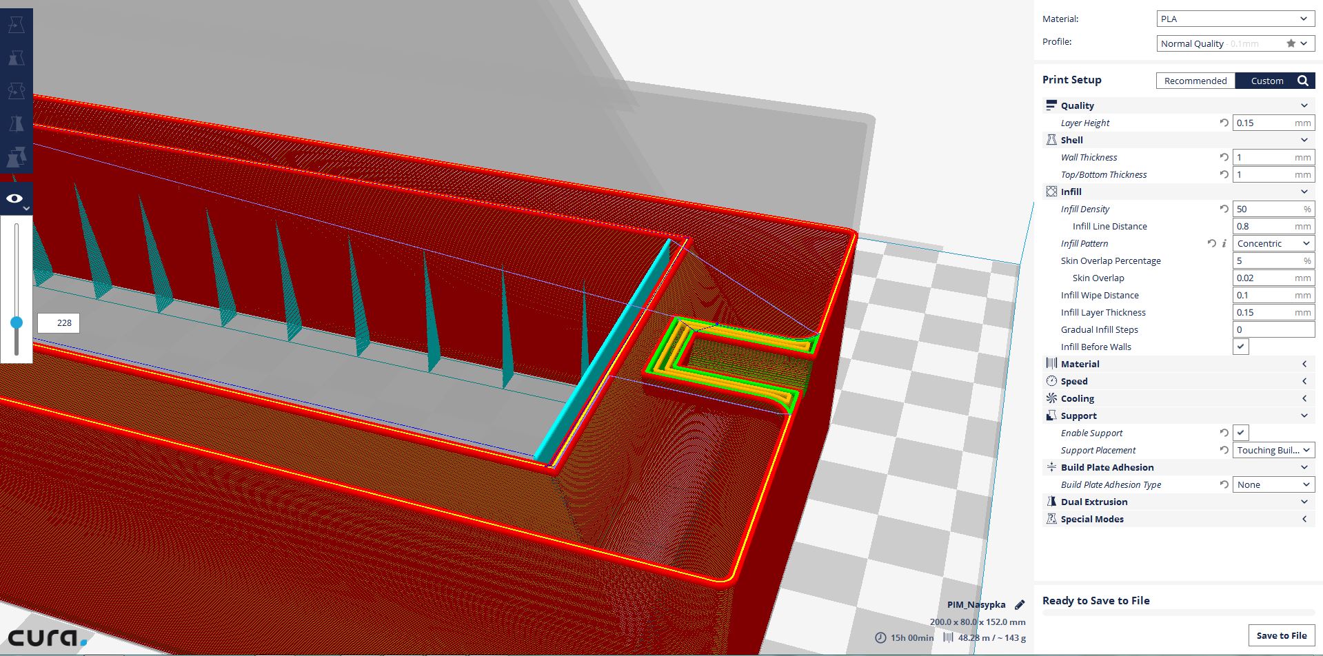 To by vypadalo třeba takhle (modifikace z 10% na 40% infill)