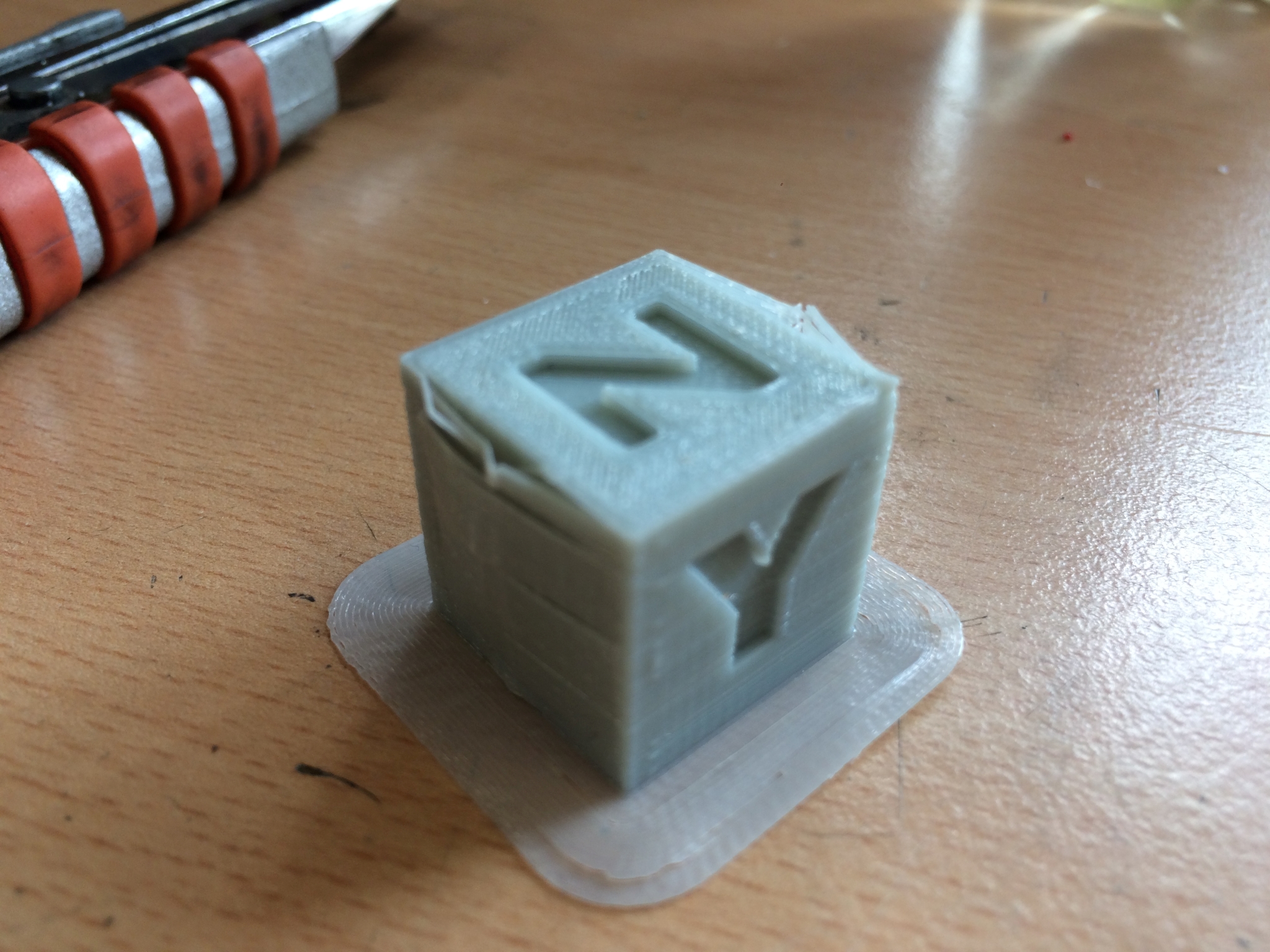 Po udrzbe na tiskarne (nove plastove dily drzaku Y + distancni sloupky bedu) jsem lehce dotahl remeny. Vytisk jsem kalibracni kosticku (bez horni uzavrene vrstvy). Velikosti sedi. Jen bych chtel od zkusenejsich nazor na ghosting. Na "X" to vypada temer super, na "Y" neco videt je.