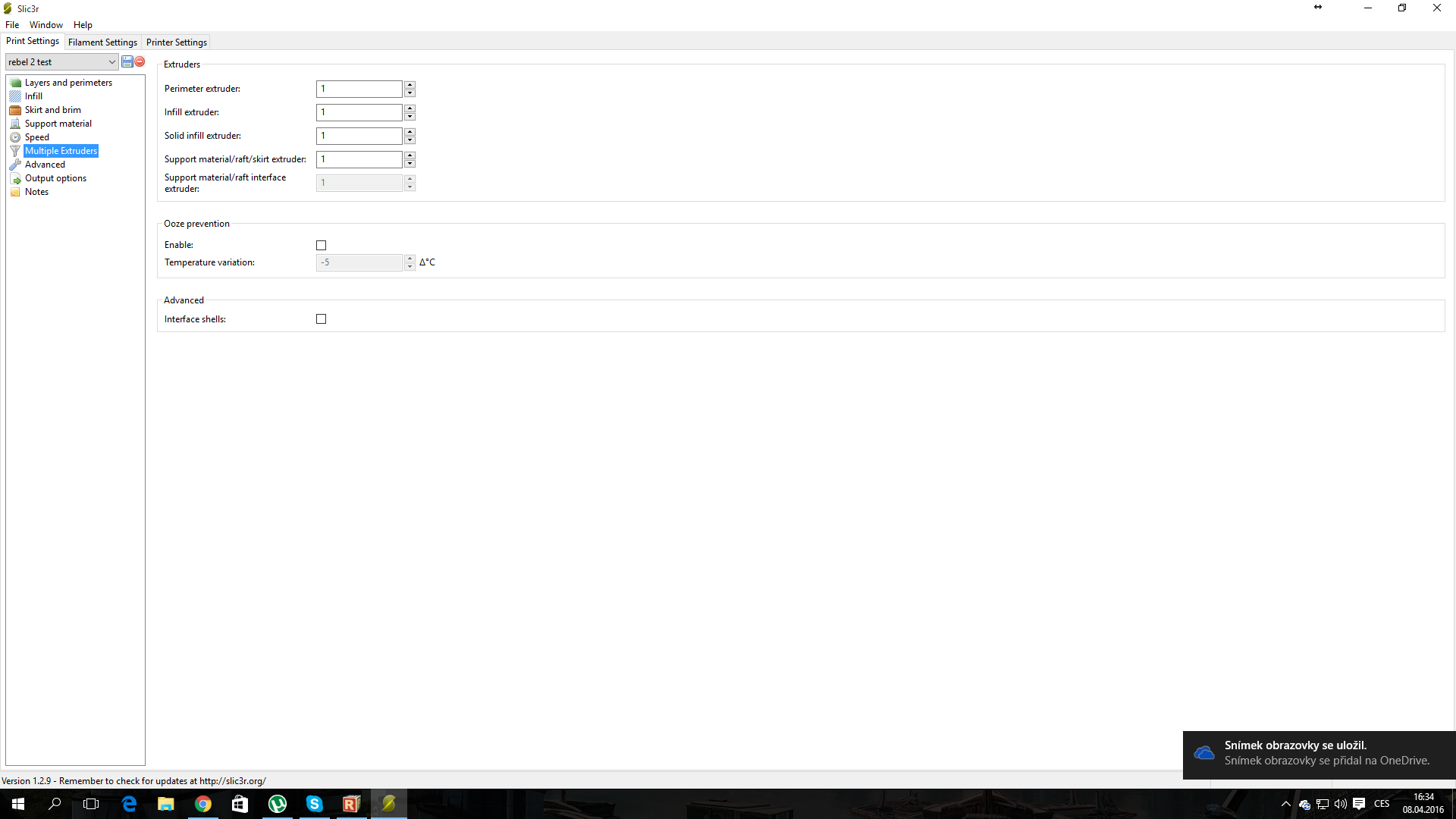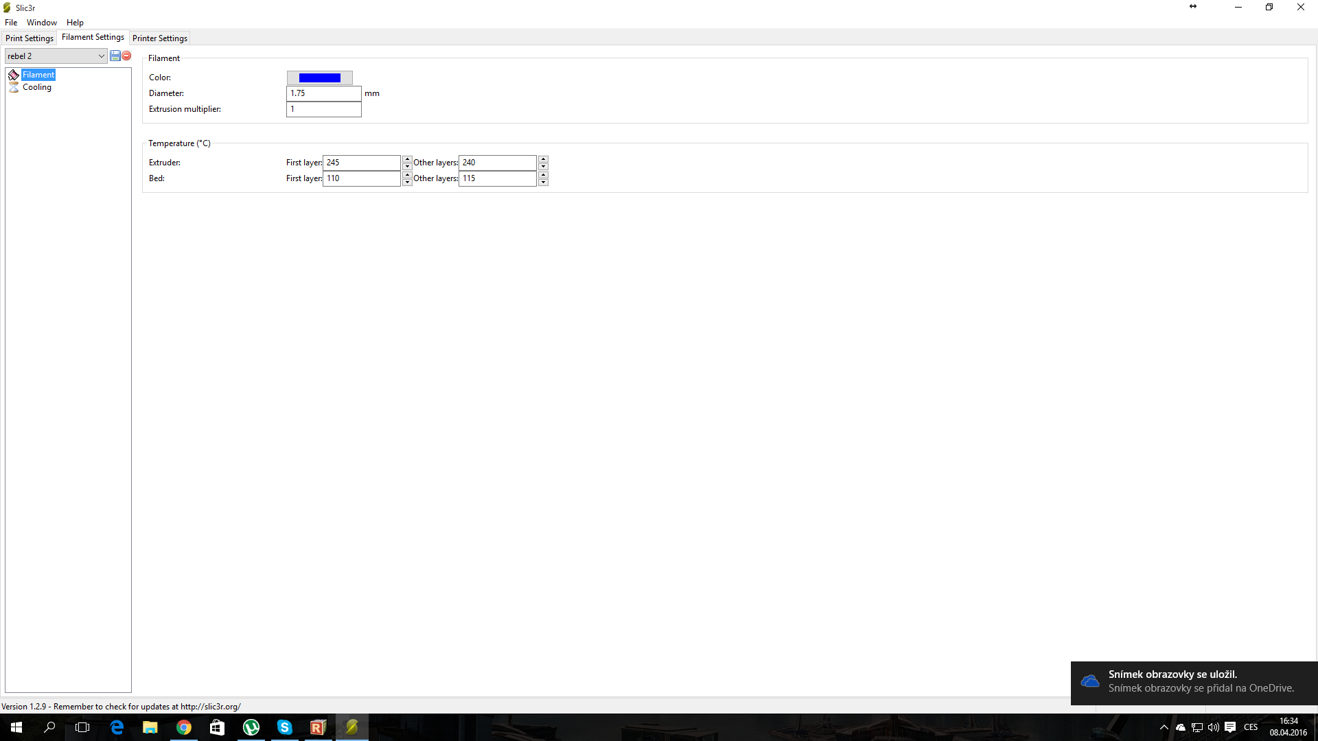 Rebel II HD+LCD (mix. JRC a cinskych dilu), deska GT2560, TMC2130 SPI, 230V hlinikova podlozka, autoleveling, octoprint+wifi+webcam.