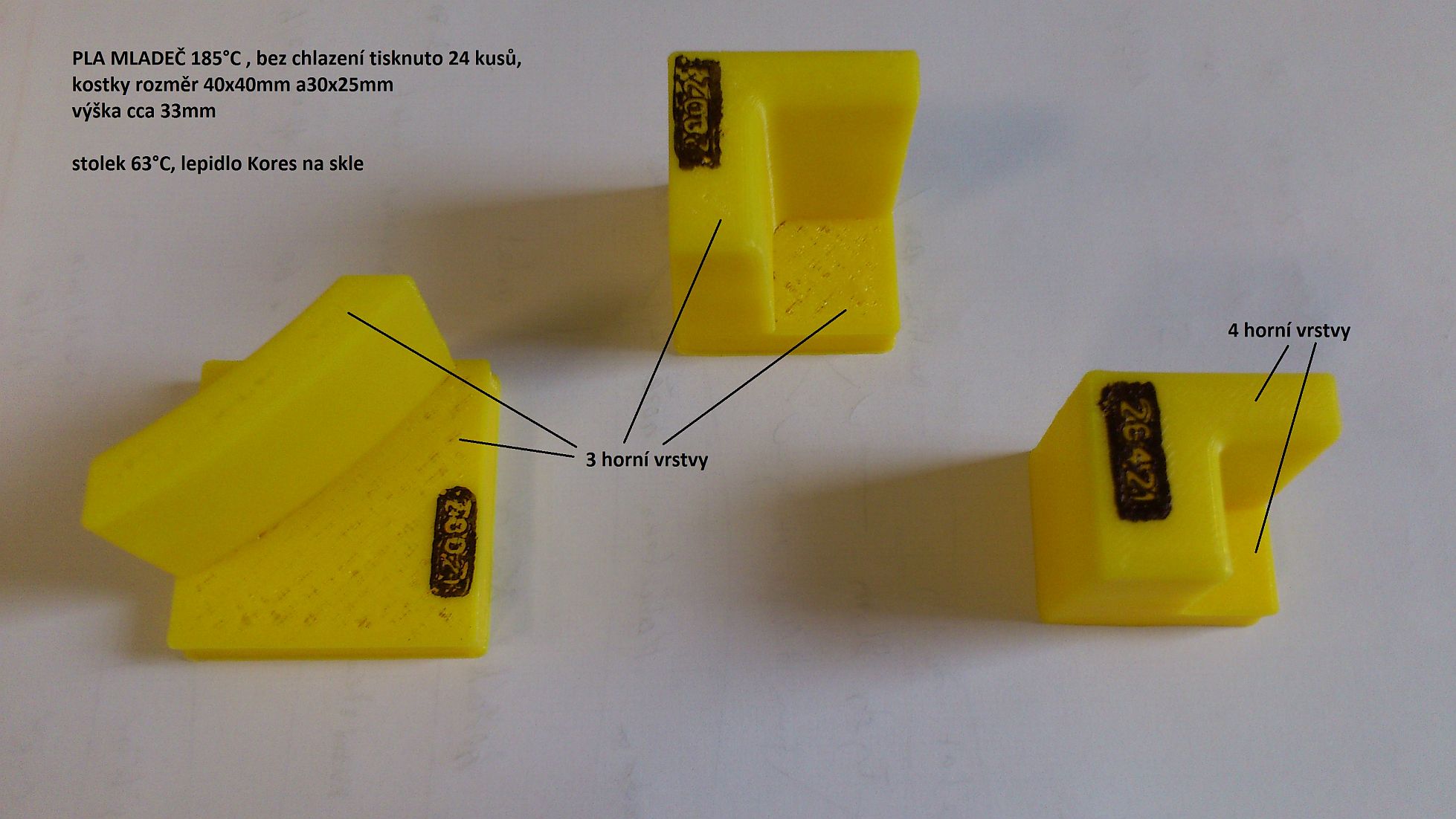 mám problém stiskem PLA mladeč. Teplota hotend 185°C, teplota bed 63°C. tisknuto bez chlazení.
