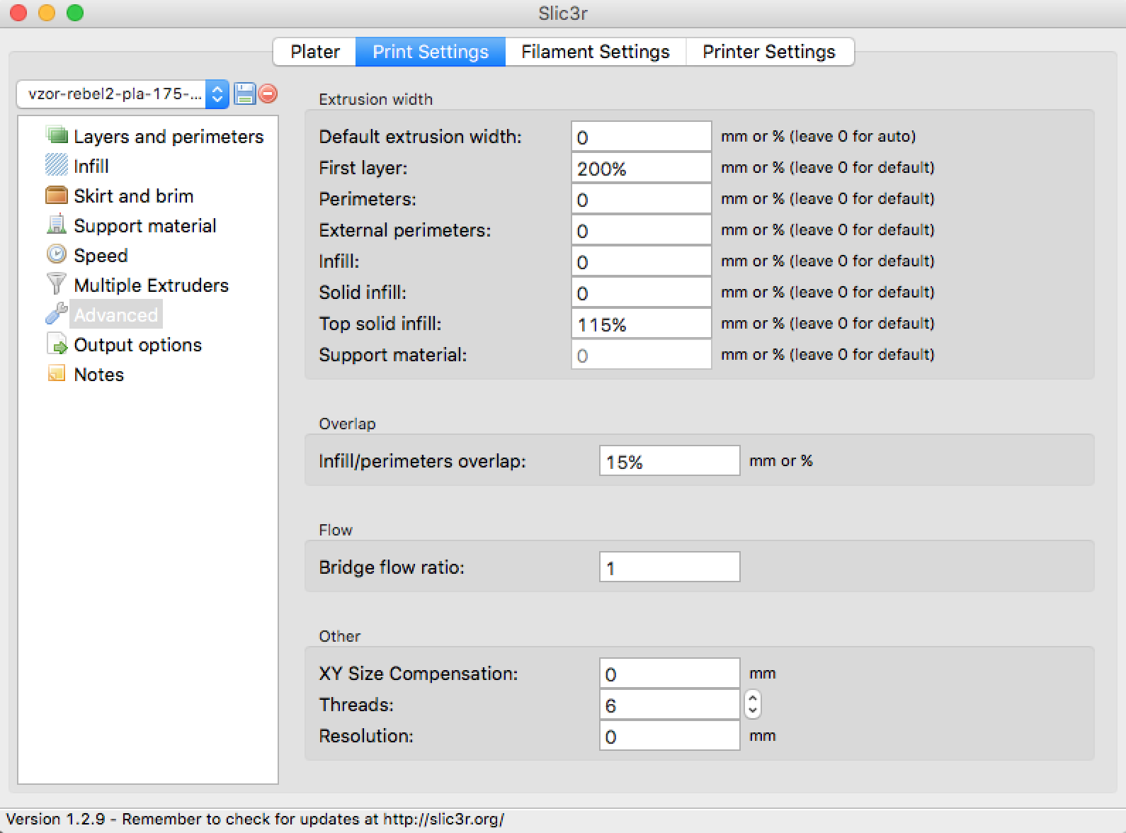 Tam mám nastaveno 1.0. Nicméně nastavoval jsem pouze průměr trysky, zbytek nechal na auto. A i tak to dávkuje málo. Pokud ale ten násobič zvednu na 1.5 tak to jede vcelku dobře. V Slic3r ale problém nemám, vše dávkuje OK. Pouze simplify3D nejede dobře.