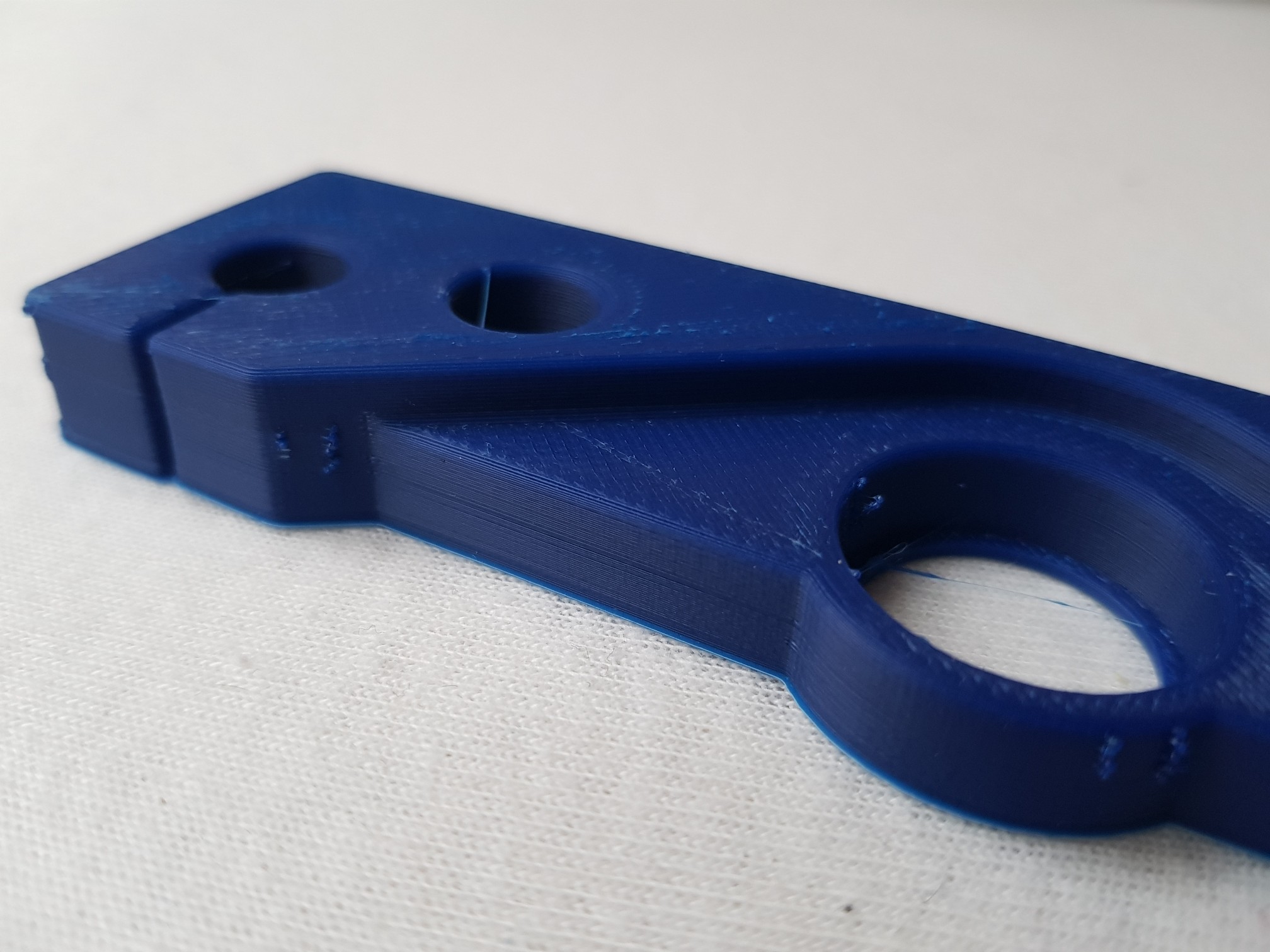 Tak sem pohledal ve starych zasobach nejaky dalsi material a nasel sem ABS LT modra od Eco3D. Lezi tam uz nejakej patek, nehodila se mi barva a bylo toho malo na vetsi dily a s nim to slape dobre. Je to teda jine ABS, ale soudim, ze tiskarna asi nema nejaky vazny problem. Vytiskl sem to napoprve se temer stejnym nastavenim jen na nizsi teplotu 238 a o 10% vyssi rychlosti (= 33 az 38 mm/s , menil sem to az behem tisku brimu na displeji). Dil je dokonce asi o 1 mm vetsi = ma asi mensi smrsteni nez to hnede ABS-T od PM. Taky sel lip dolu ze skla.