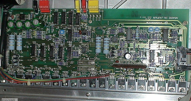 Ono to vypadá, že většina krokáču kuchnutých ze starších tiskáren a ploterů je unipolárních s moc velkým odporem pro moderní drivery nepoužitelných. Teď jsem se koukal do A3 ploteru Graphtech někdy z poloviny 80-tých let. Jsou v něm kupodivu dvoufázový 1,8 st bipoláry 12V/1,2A. V příloze je řídící deska 150 x 300 mm pro dva krokáče X a Y a pár spínacích funkcí mechaniky ploteru jak se to dělalo před 30 lety, ekvivalent dvou DRV8825. :lol: Vpravo jsou 2x vstupy Dir a Step, nahoře žlutej a červenej vývod pro krokáče. Docela pokrok a miniaturizace, co?