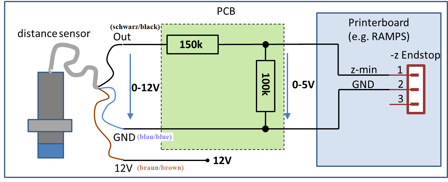 Instead of connecting the sensor to the 12 Volt input (like required for the BY) the LJ12A3-4-Z/BX can be connected to the 5 Volt output on the actually stop. The 5 Volt is enough to get the proper signal (even though the specs state 6-36V).