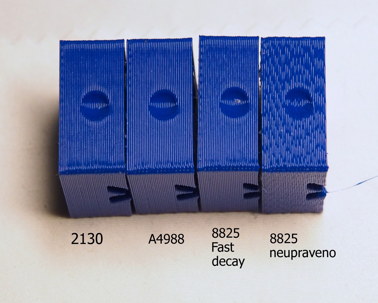 Ferdasek píše:Přidávám srovnání kvality tisku driverů tichého režimu s 2130 a driveru 8825 v módu fast deay (s propojenými piny 18 a 19) a driveru 8825 bez modifikace.