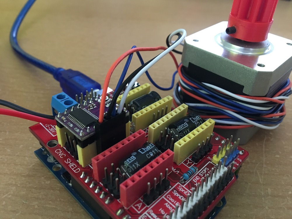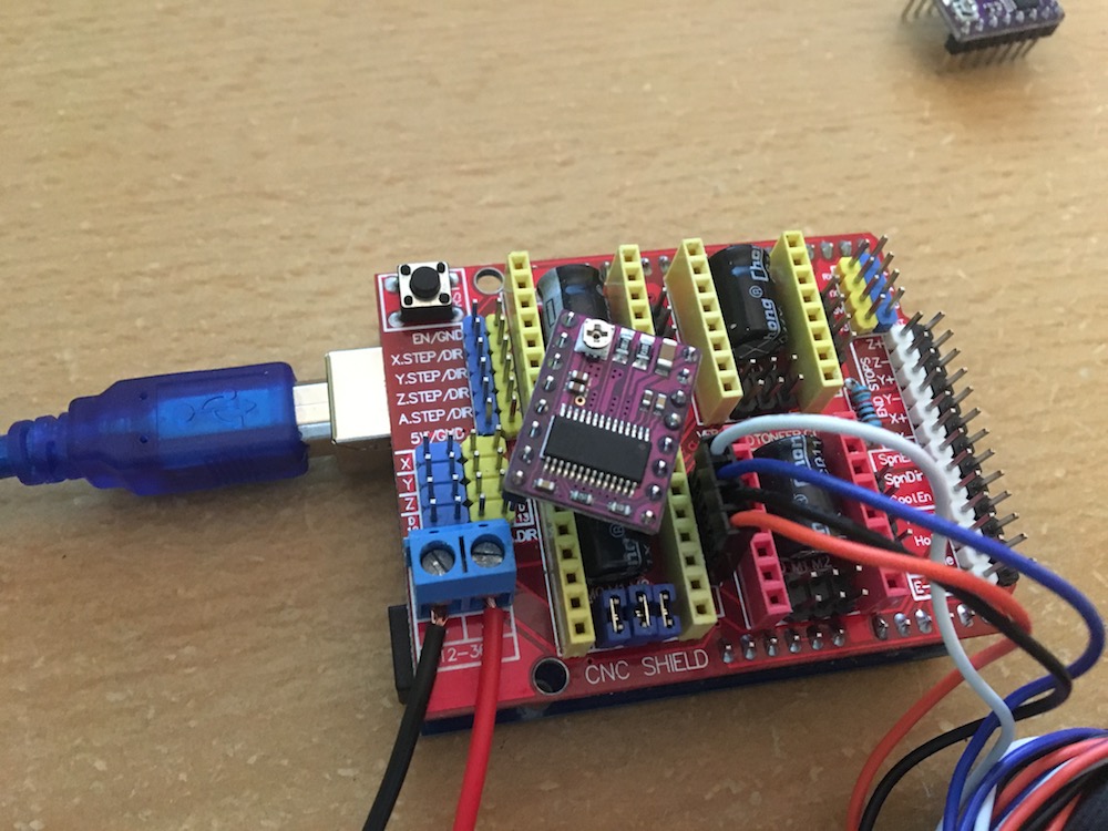 Ahoj, do budoucna plánuji stavbu Rebela 2 tak jsem se rozhodl že začnu s elektronikou. V úterý mi dorazily součástky z Ali a od té doby se mi ještě nepovedlo pohnout s motorem ani o krok. Používám Arduino UNO a CNC shield s driverem DRV8825. Do arduina jsem nahrál GRBL 1.1e. Na ovládání z PC používám Universal Gcode Sender. Zapojení je vidět na obrázku. Budu rád za každou pomoc a po týdnu neúspěchu se nedá říct že bych si byl zrovna moc sebejistý :? .