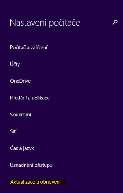 Dame pravy horni roh a zobrazi se nam postarni lista. Zvolime nastaveni. Potom zmenit nastaveni pocitace.