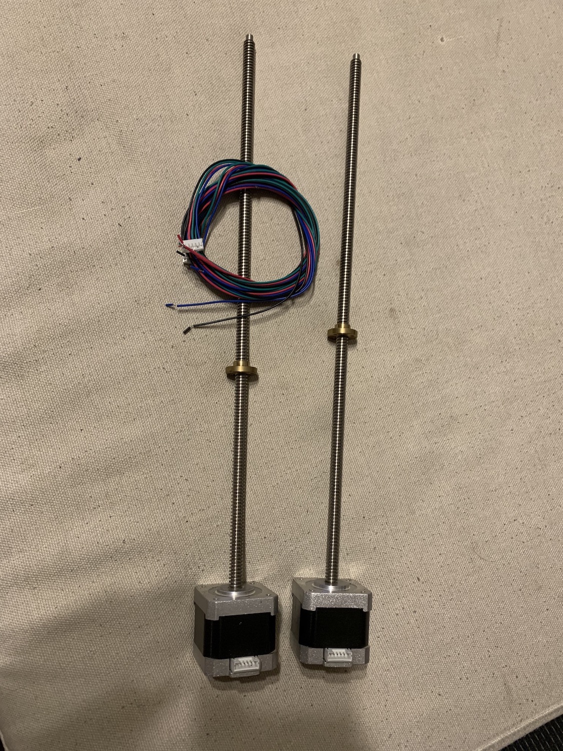 Prodám dva nové nepoužité motory s tapézovou tyčí a maticí. Zbytky z projektu. cena 1000,- za oba??
