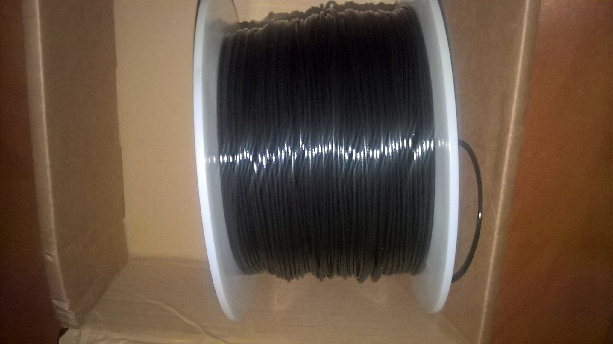 A poslední je černý PETG již použit, struna má ještě 750g a je převinuta na jinou špulku, popis a barva opět v obrázku níže.