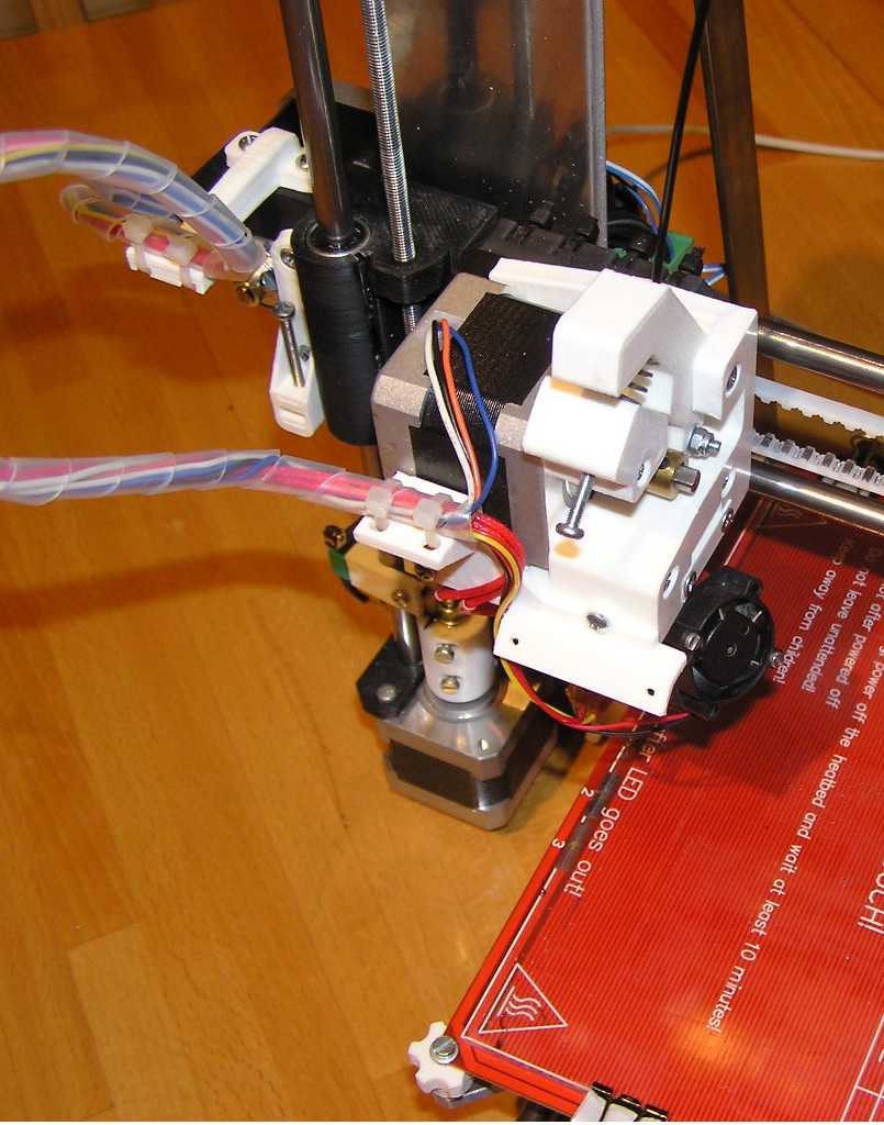 Původní extruder s převodem měl trochu vůli v kolech, tak jsem byl zvědavej jaký vliv bude mít direct-drive na tisk. Zatím jsem s RII extruderem natisk jen pár desítek metrů, ale zdá se mi, že se omezily takové ty bouličky nebo jak to nazvat, co se občas objevovaly na bocích výtisků, když se tisklo víc dílů najednou a tryska mezi nima přejížděla. Ale uvidim až natisknu s RII víc.