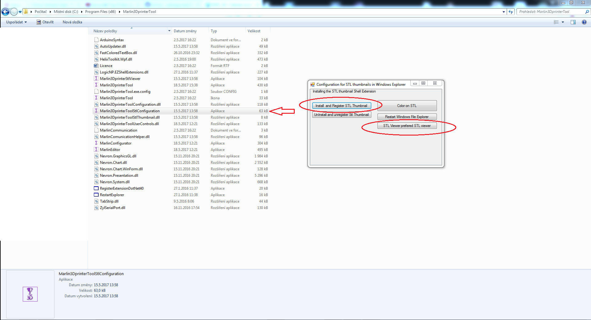 3. najděte v program files Marlin3DprinterToolStlConfiguration, spuste to a dejte install a register a STL viewer prefered...