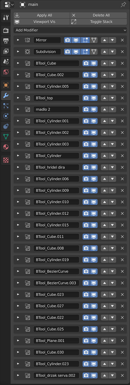 Funguje to parádně a rychle, jen při úpravě nějakého objektu, který má hodně modifikátorů, to trochu skáče.