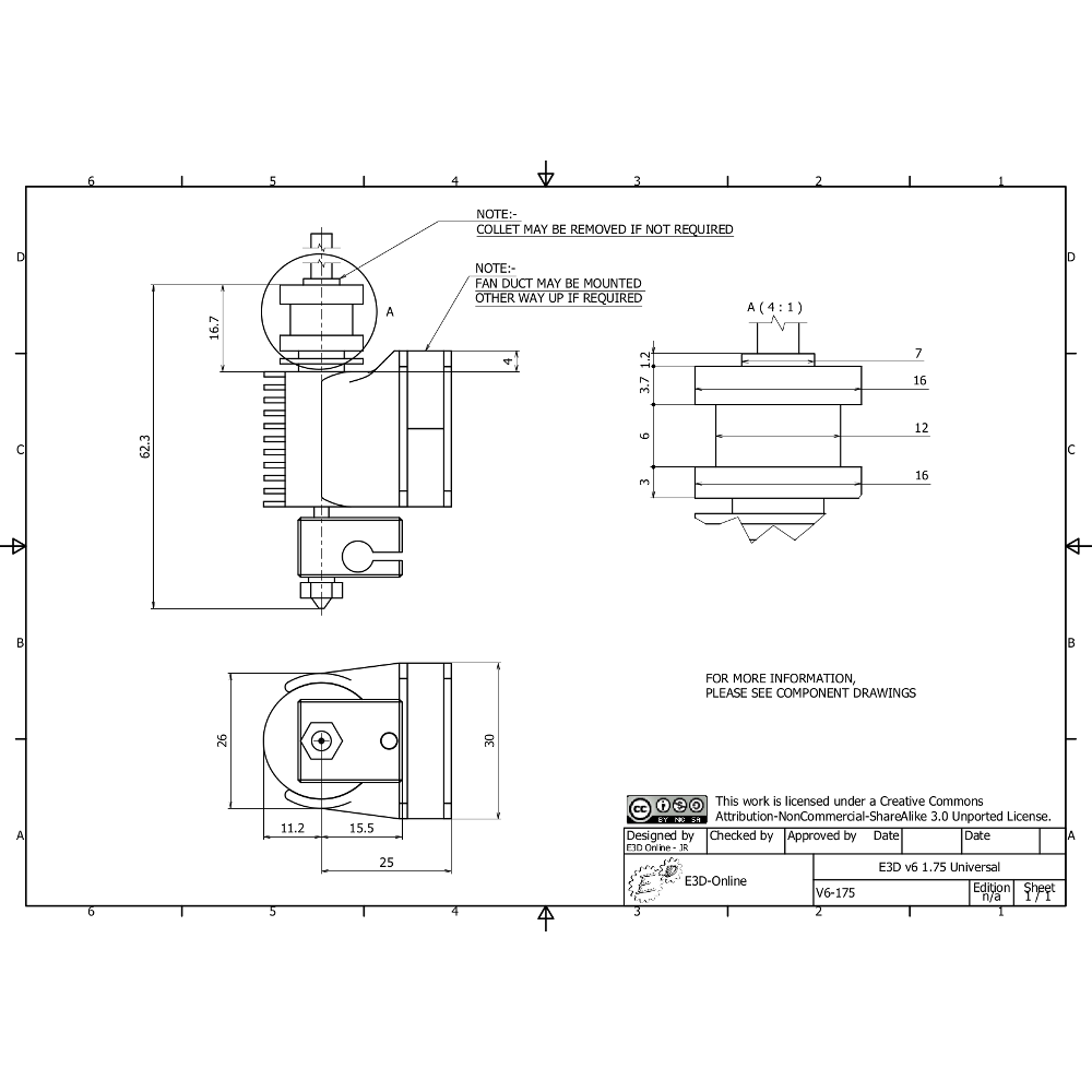 Jednak jsou o fous jiné rozměry, ale hlavně jde o to, že V6 E3D (i ta, co jsem dával odkaz), má malý "límec", který vede teflonovou hadičku v HotEndu. Což brání ve vložení vlastního HoEndu do "holderu", ktará mám.