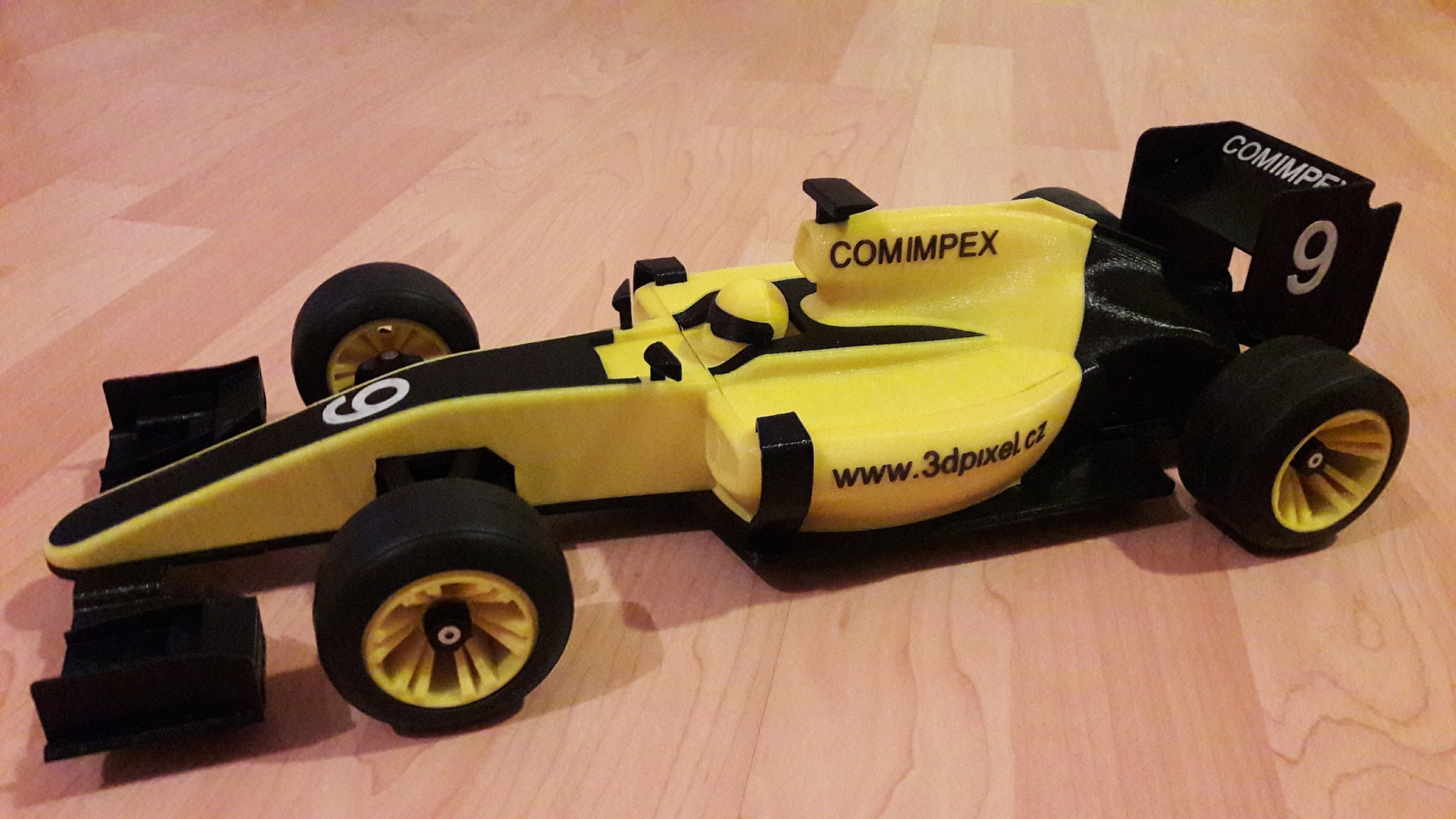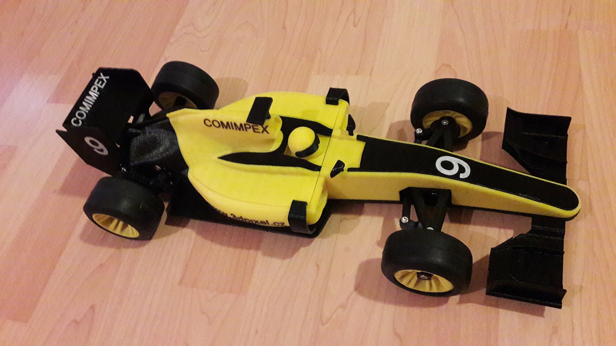 Tak jsem včera a dnes zkoušel jezdit s tištěnou formulí. A je to těžký zklamání, je tak do vitríny. Problém jsou gumy. Zkoušel jsem 3 různý typy. Na palubkách a dlaždičkách jsem měl gumy tištěný z mladečskýho TPE32 přetažený na radu Kroxigora páskama nastříhanejma z duše horskýho kola. Duše se dokáže natáhnout tak, že přesah je až k diskům, skoro to vypadá jako pravá slicka. Ale dost se to smeká a hrabe, na dříví to ještě jde, ale na dlaždičkách špatný, samej smyk.