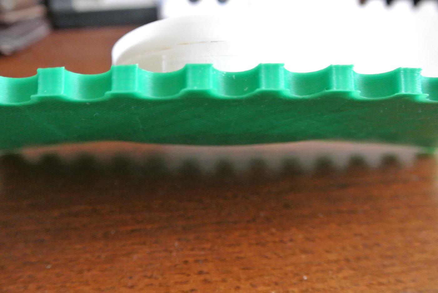 To co se ale vytisklo vypadalo dost dobře, vynikající kombinace pevnosti, pružnosti a relativně i soudržnosti vrstev. Zlomit se mi to nepodařilo, dosáhl jsem jen rozlepení vrstev mezi sebou. Přesto považuju zatím bez vyhřívané komory PC za naprosto nepoužitelný materiál.