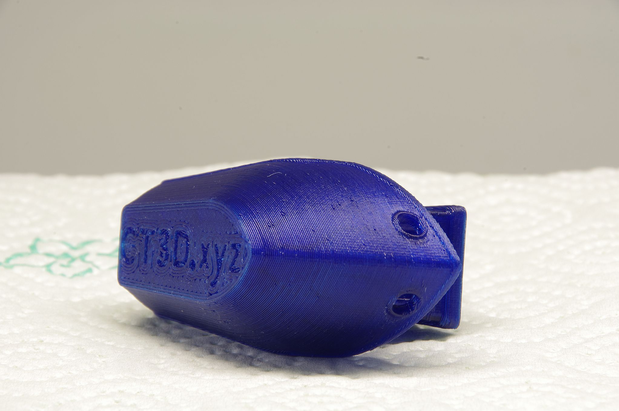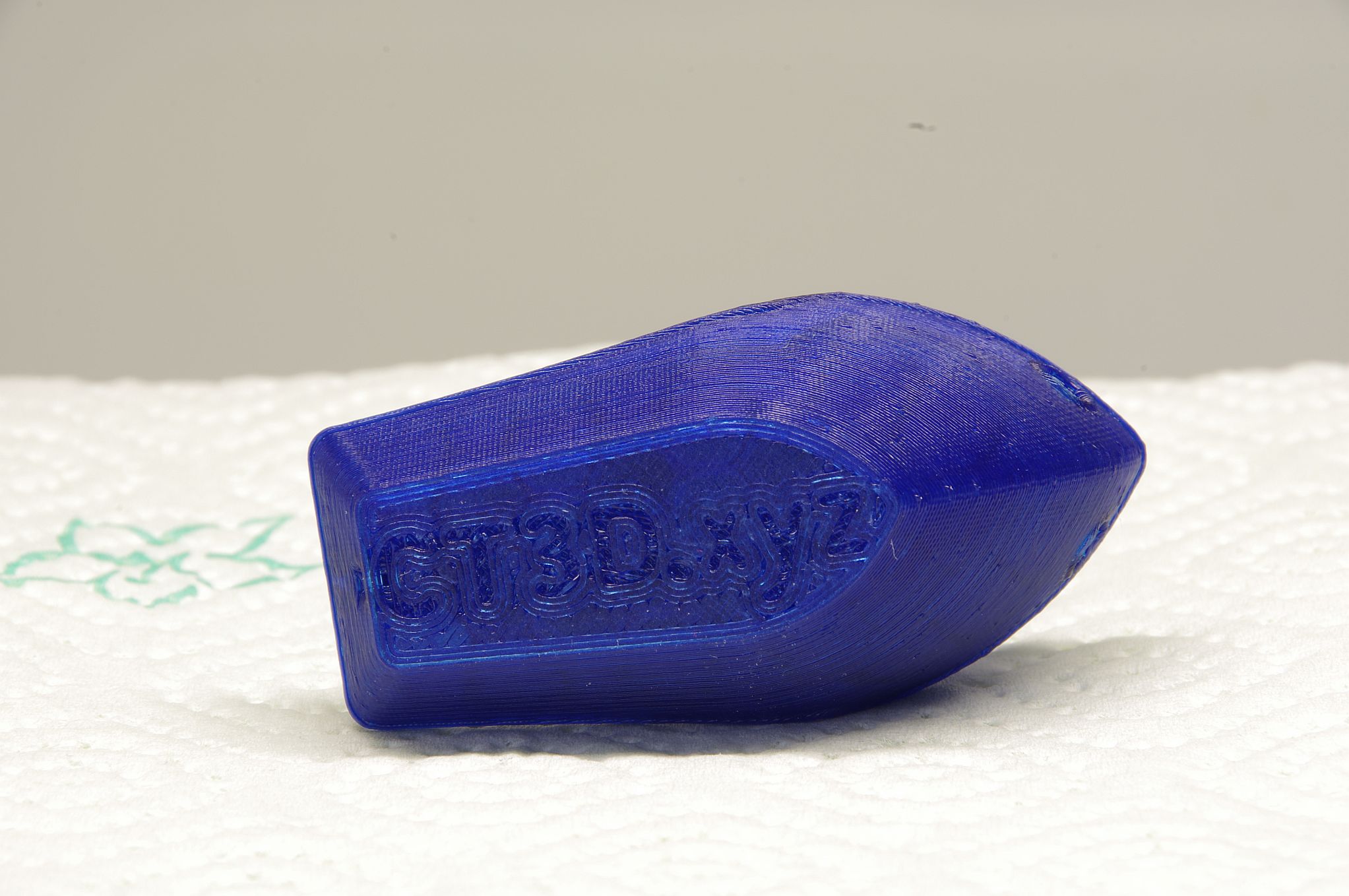 Tak kdyz uz se chlubime tiskem z PETG, tak tohle je zatim to nejlepsi co jsem z toho dokazal vytisknout. Je to Esun PETG - Blue, 0,2mm, 30% infill, 30mm/s, HE245,BED80+Buildtak, 1,2mm retrakce. Me se to libi, ale porad se nedokazu zbavit tech "bedaru" na boku vytisku (viz. foto).