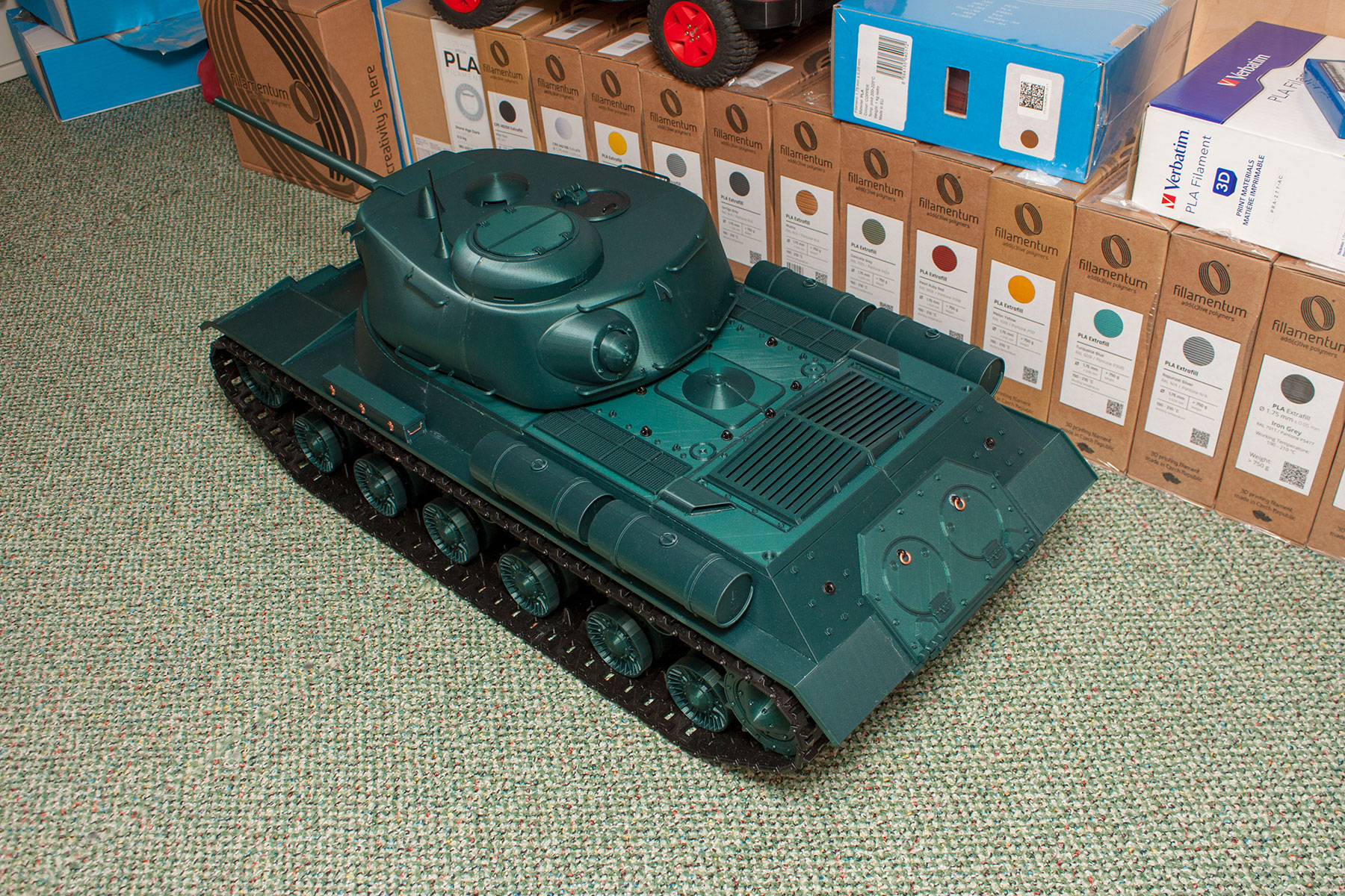 Toto nastavení mám standardně na vše, pouze výplň nižší. A tisknu i na 80 mm/s, akorát při 230°C a nekomplikované větší díly. Problémem pak je velké pnutí při chladnutí, takže tenké věci, jako je třeba ta věž tanku, by se zkřivily. Tiskárny jedou průměrně 5,5 m filamentu za hodinu, na tank jsem spotřeboval 1650 m, to je 300 hodin tisku.
