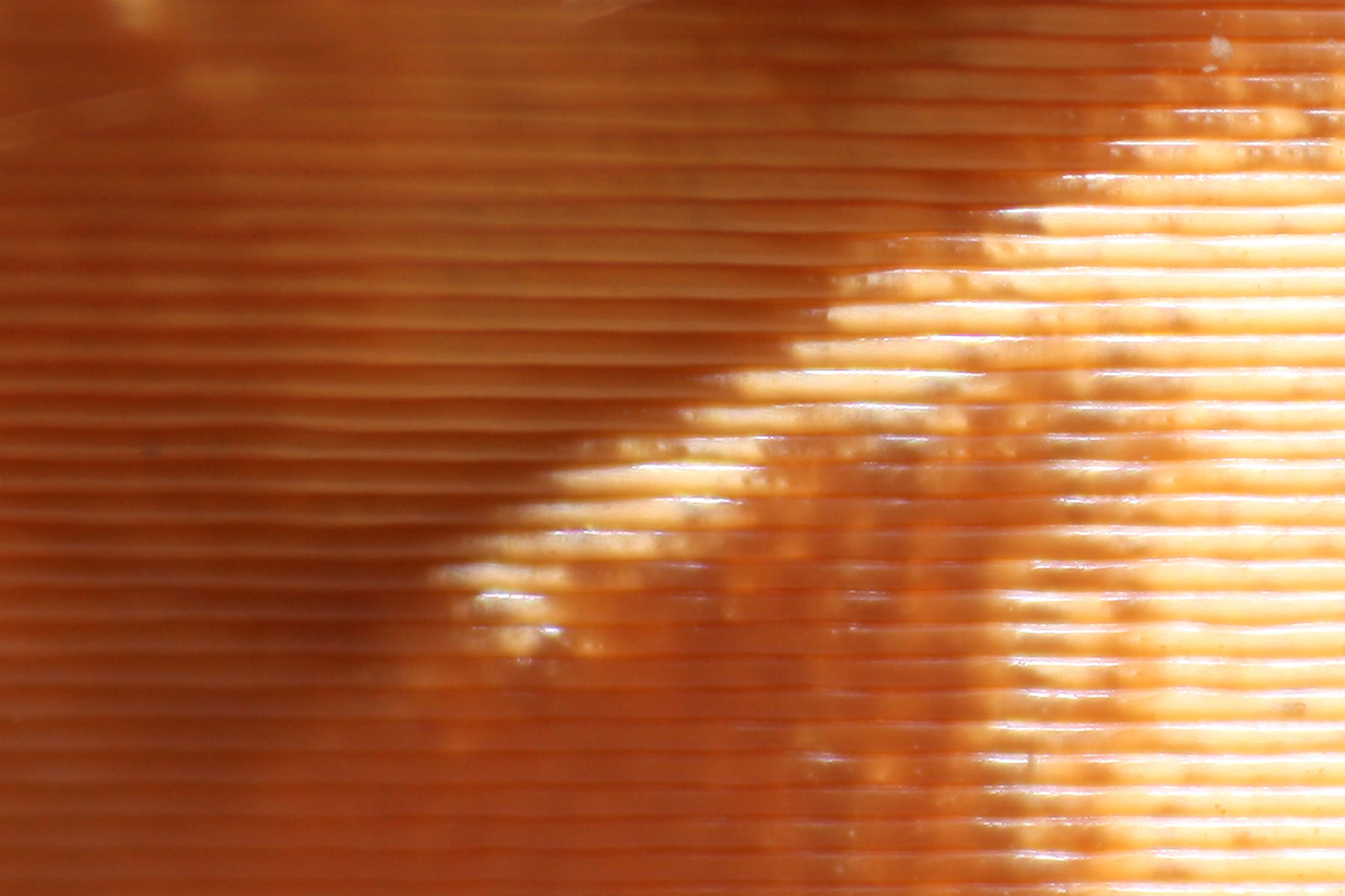 Povrch je velmi hezký, nejsou vidět vrstvy, pokud to není velký úhel. Je takový až semišový.