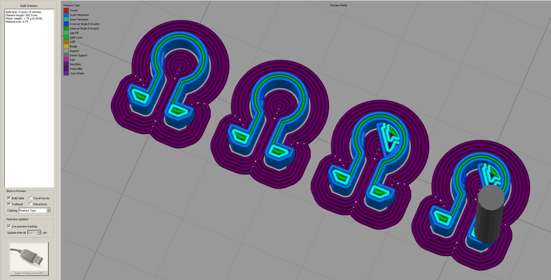 Kdyztak holt rozkoukam ten python a podivam se, jestli by to neslo nekde trochu vylepsit. Zdrojaky od toho jsou a zakladni veci sem uz zkousel predelat (ve starsich verzich byl ten USB print docela plnej chyb a nezobrazoval skoro zadny info o tisku). Kazdopadne ten USB print vylepsuji a treba najdu i cestu, jak lip nebo automaticky poslat GCODE na tisk pres nejaky script. Pro XYZ tiskarny uz sem sehnal commandline utilitu a pomohl ji autorovi vychytat. Urco neco vychytam i na ostatni Marlin-based tiskarny, tak aby se to nahralo na SD kartu primo a nemusel sem shanet Eye-Fi katu nebo podobny blbosti, pripadne vytahovat kartu strkat do PC a pak zase vracet do tiskarny.