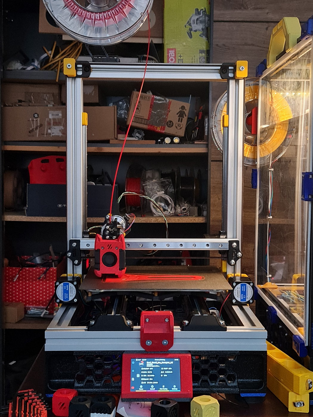 S tim hotendem ted nevim, pisete, ze mam jine provedeni hotendu a pri tom zaroveni zminujete, ze mate Dragonfly BMO coz je presne to stejne, co mam v mem RapidBurneru nasazene ja. Kazdopadne v dobe, kdy jsem mel na tiskarne jeste 10mm kulatinu, jsem mel dva modnute komponenty - vozik a k nemu toolhead mount, ktery zaroven slouzil jako drzak pro microprobe v2. Kazdopadne sem rad hodim sem oboji...