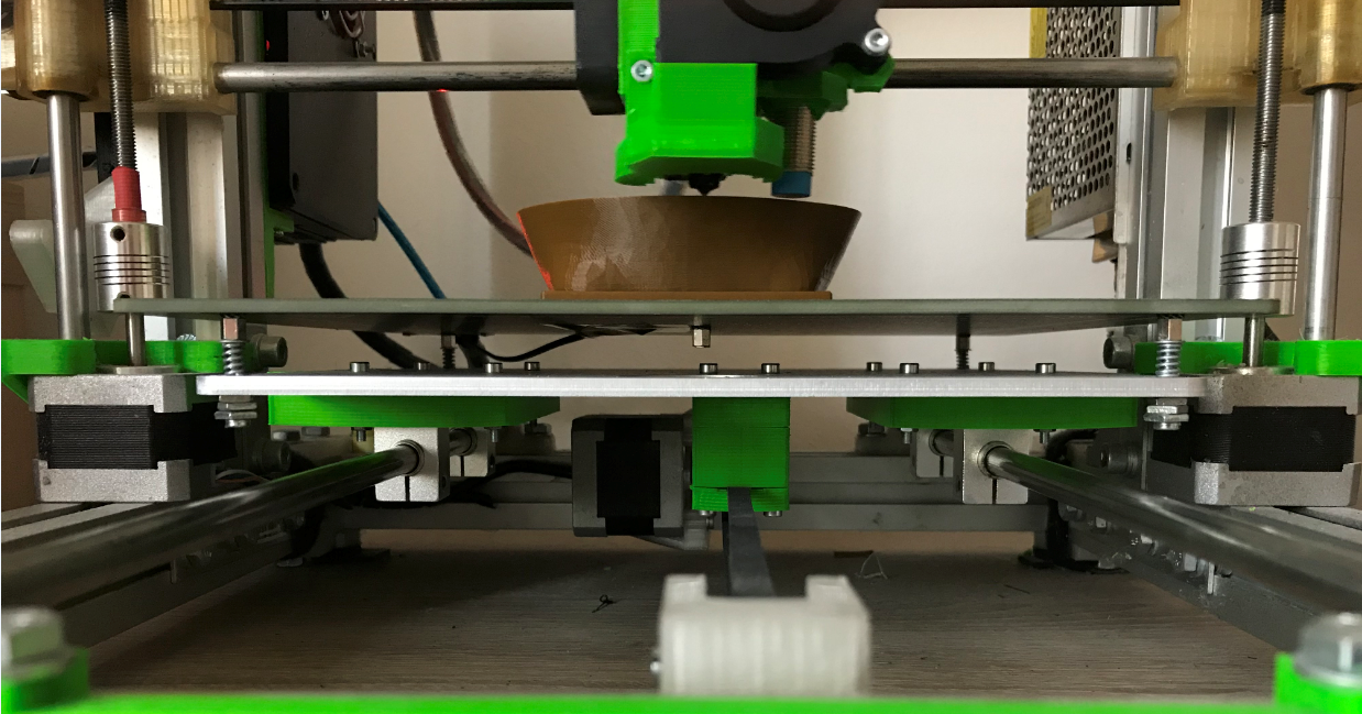 Níže fotky, jak to celé vypadá. Jak píšu výše, je to rest, chtěl jsem se tím pochlubit už dávno, ale pořád jsem to odkládal a ve výsledku už nemůžu najít ani STLka jednotlivých dílů. Nicméně, protože mám na míru uříznutý spodek stolku pojezdu, tak by vám ty díly s největší pravděpodobností neseděly.