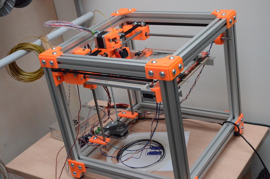 Pěkná CoreX kostička :). Pokud zkusím ale něco podobného překopat na své požadavky, to jest 2x tryska + plocha tisku 200x400 mm, zase narazím na problém s průhybem vodících tyčí. Ještě uvažuju nad kombinací profilů ITEM a OpenRail ( http://www.snailshop.cz/205-openrail ). Cenově už je to poněkud výš, než při použití kulatiny a lineárních ložisek, ale pořád je to o dost levnější než použití ocelových kolejnic a vozíků. Navíc i hmotnost bude nižší, takže menší namáhání pohonů. Když jsem si zkusil propočítat cenu profilů ITEM na celou konstrukci (použitím profilů od aplupy na rám bych nijak výrazněji neušetřil...) + kolejnice + kladky, dostal jsem se na cca 7500 Kč, což už je docela dost, ale pořád na úrovni, kterou bych byl ochotný zaplatit. Jen je otázkou, jak na tom jsou s životností komponenty kolem OpenRail, abych co 100 hodin provozu nemusel dělat generálku pojezdů...
