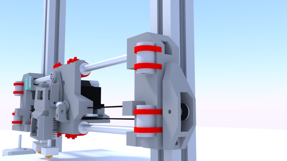 Já mám v plánu motor pro extrudéry dát mezi tyče osy x, takže motor bude vyčnívat za tyčemi a před tyčemi bude kolíbka s extrudéry. Tím pádem by byla váha celého extrudéru blíže k vodícím tyčím.