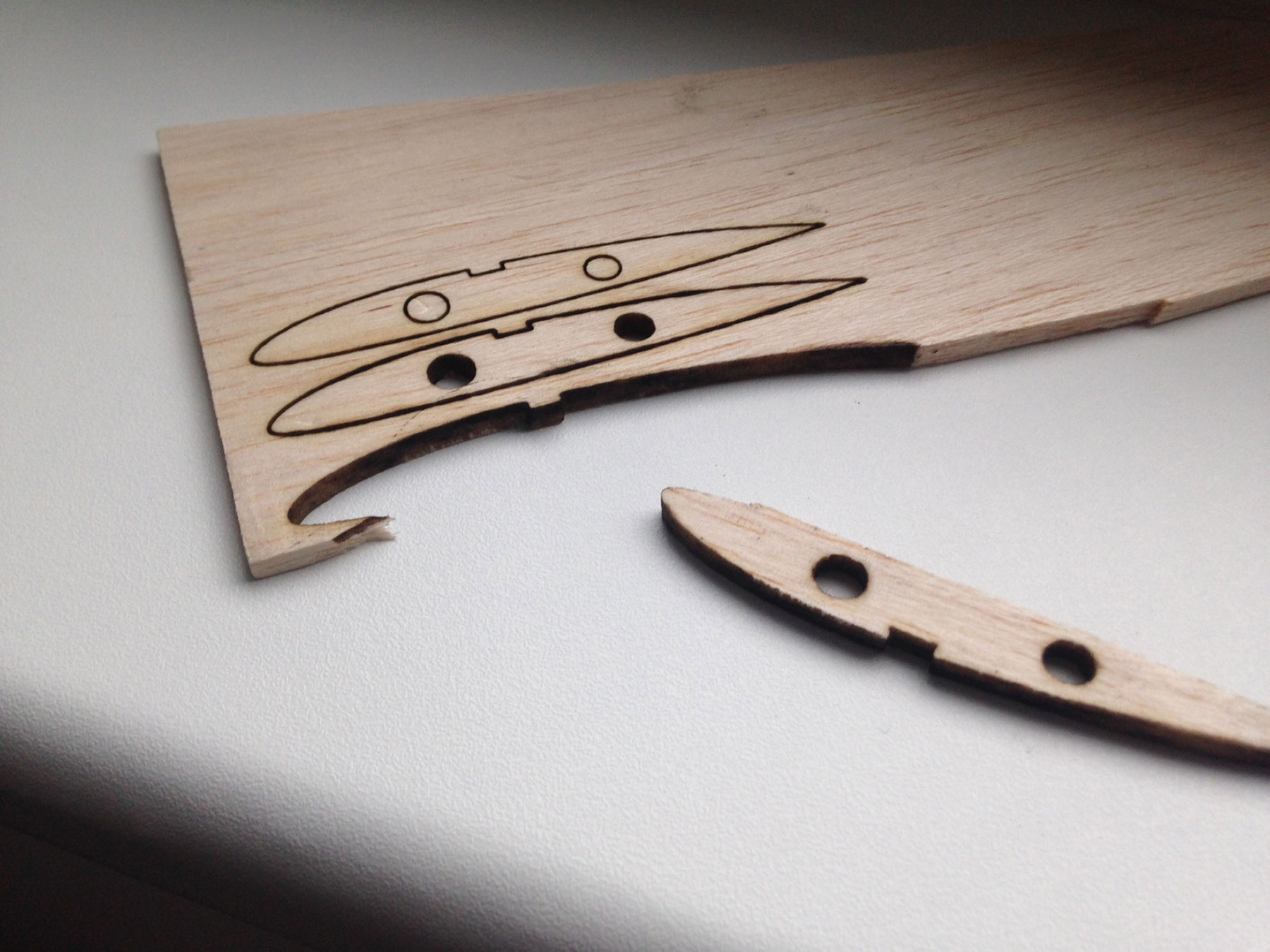 Úspěšně jsem řízl balsu 3 mm, ještě si budu muset pohrát s ostřením.
