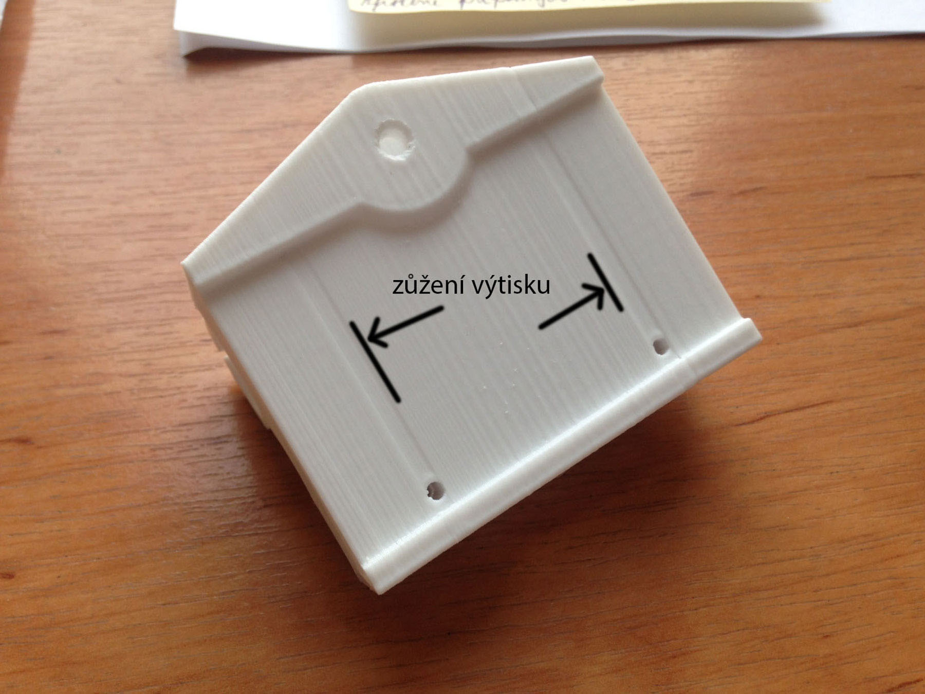 Nicméně výtisk v místě otvorů je stále zůžený: