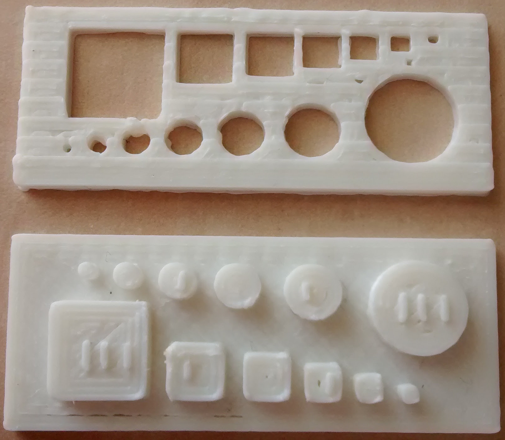 Diry/vystupky jsou tam vzdy kulate a hranate, rozmery 10, 6, 5, 4, 3, 2, 1 mm