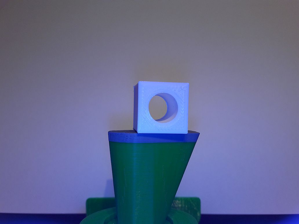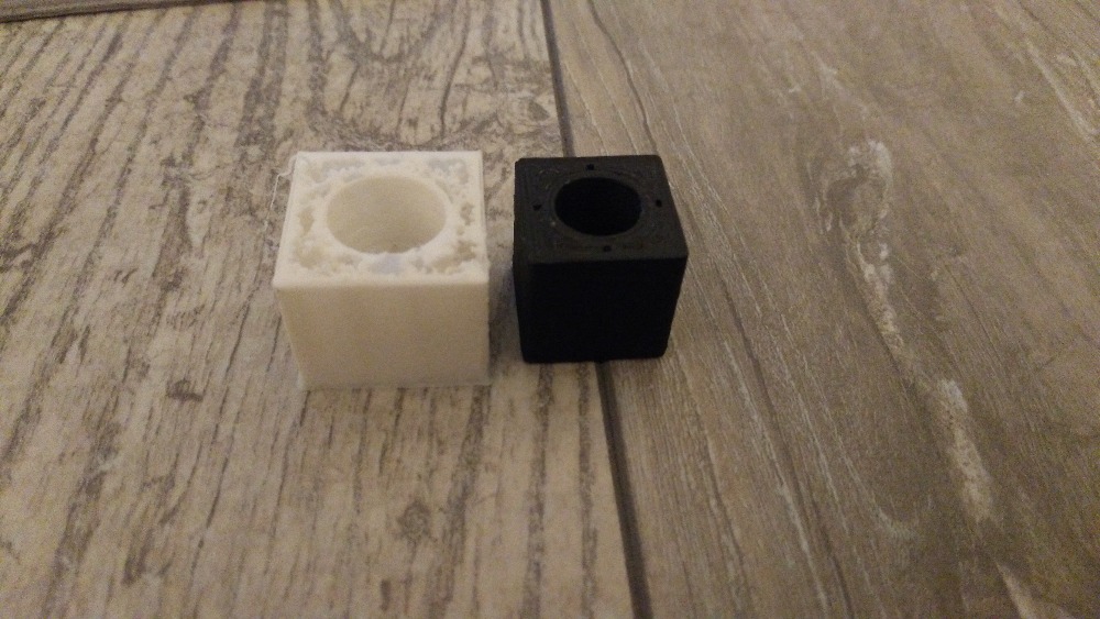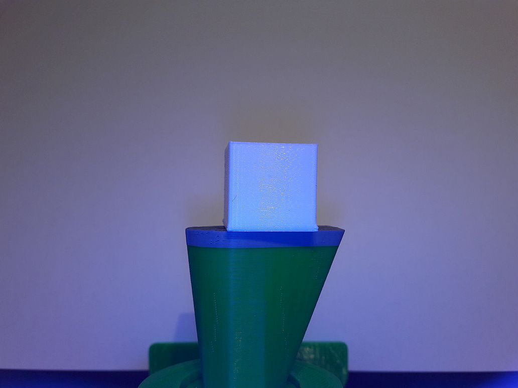 Prostě mi to dělá tohle. Černá je 2x2x2cm bílá je 2,5x2,5x2cm. I ve Sliceru je krásně vidět jak jsou jednotlivé vrstvy od sebe. Jak kdybych měl špatně nastaveny osy ( kroky). Proč je to ale vidět ve Sliceru. Na fotce jde krásně vidět jak je to neuzavřené a od sebe.