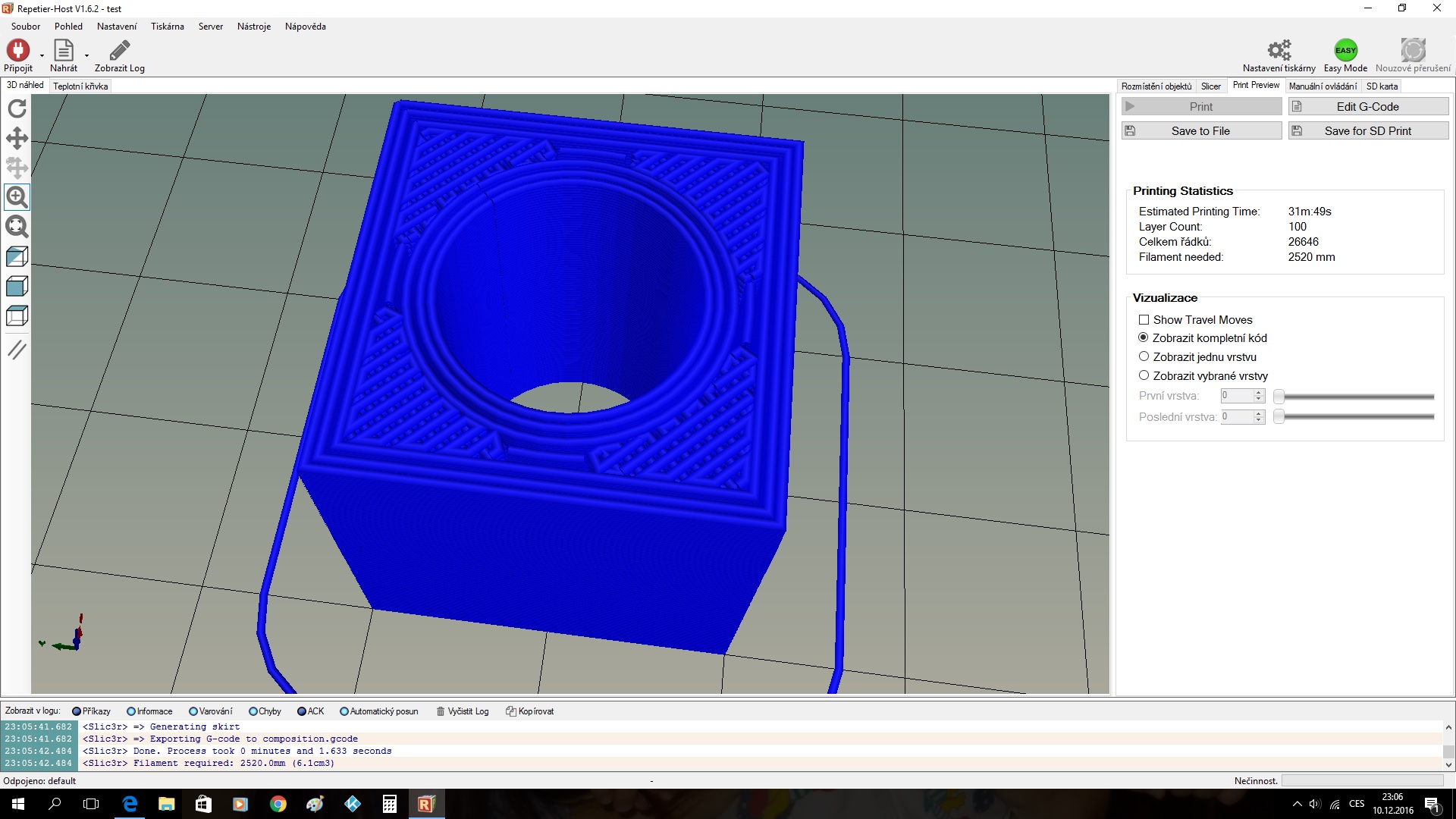 HonzaK píše:Kroxigor nemám to tam. Nic jsme s tím nedělal. Jen nastavil trysku a filament. Z Průši sliceru to vytisklo vše ok.