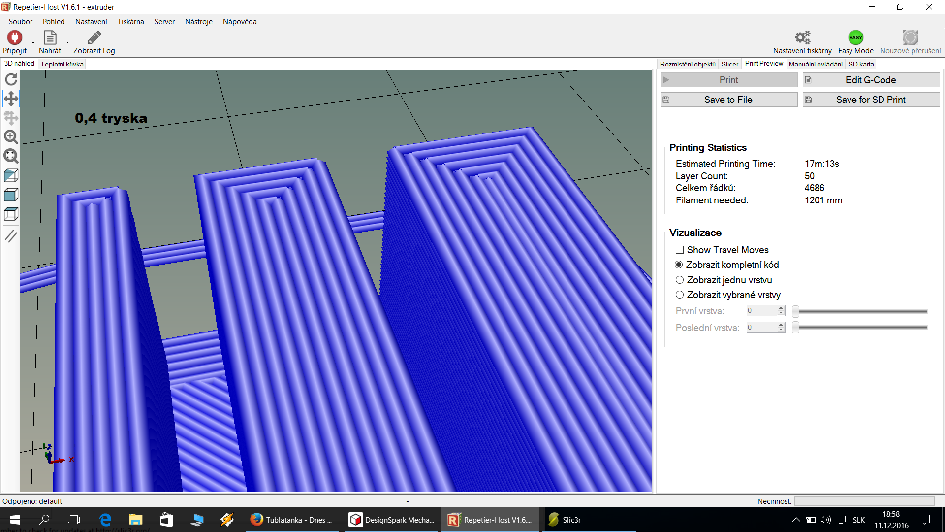 Repetier neslicuje to je obslužný SW slicuje Slic3r, Cura, Skineforge