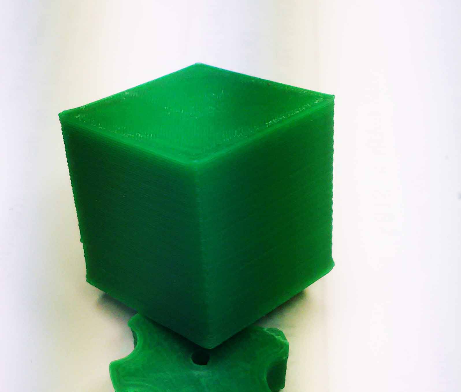 potřebuji radu. Zprovoznil jsem R II a zkusil si vytisknout kostičku z mě neznámého zeleného ABS a řekl bych, že po zvýšení teploty na 255 a zapnutí ofuku se podařilo. Viz foto. Podotýkám, že jsem stáhl již vygenerovaný G_code viz. foto.