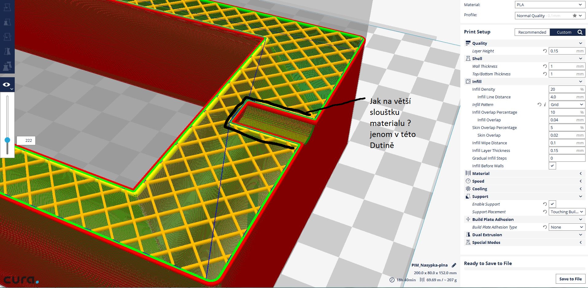 To by vypadalo třeba takhle (modifikace z 10% na 40% infill)