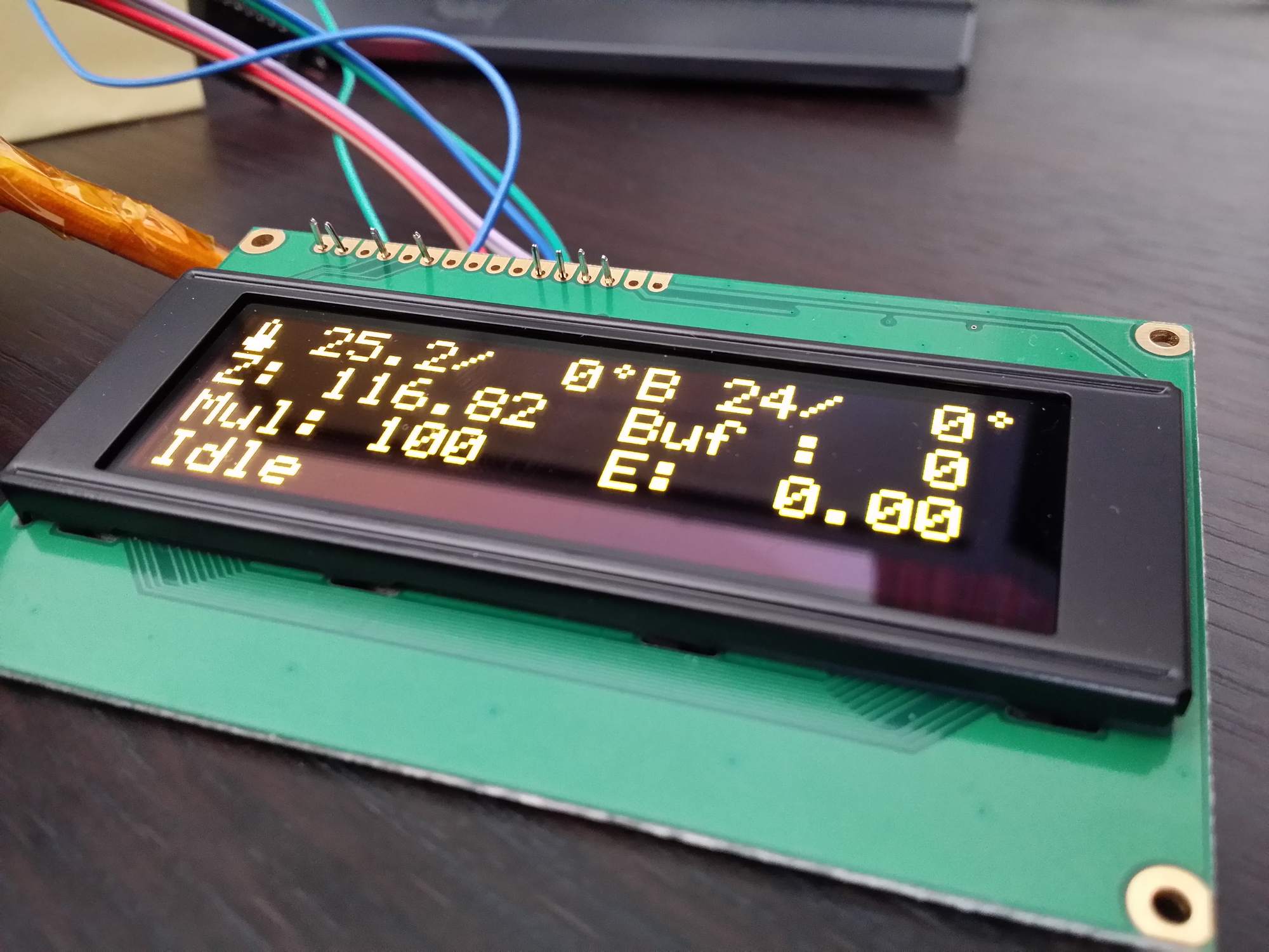 Takze I2C pro display neni dobry - mozna by to i stacilo, jelikoz tolik zmen na displayi neprobiha, ale prinasi to vic prace se zprovoznenim v Repetieru a jedine co to usetri jsou 4 draty z 8 dratu, takze nic moc uzitek.