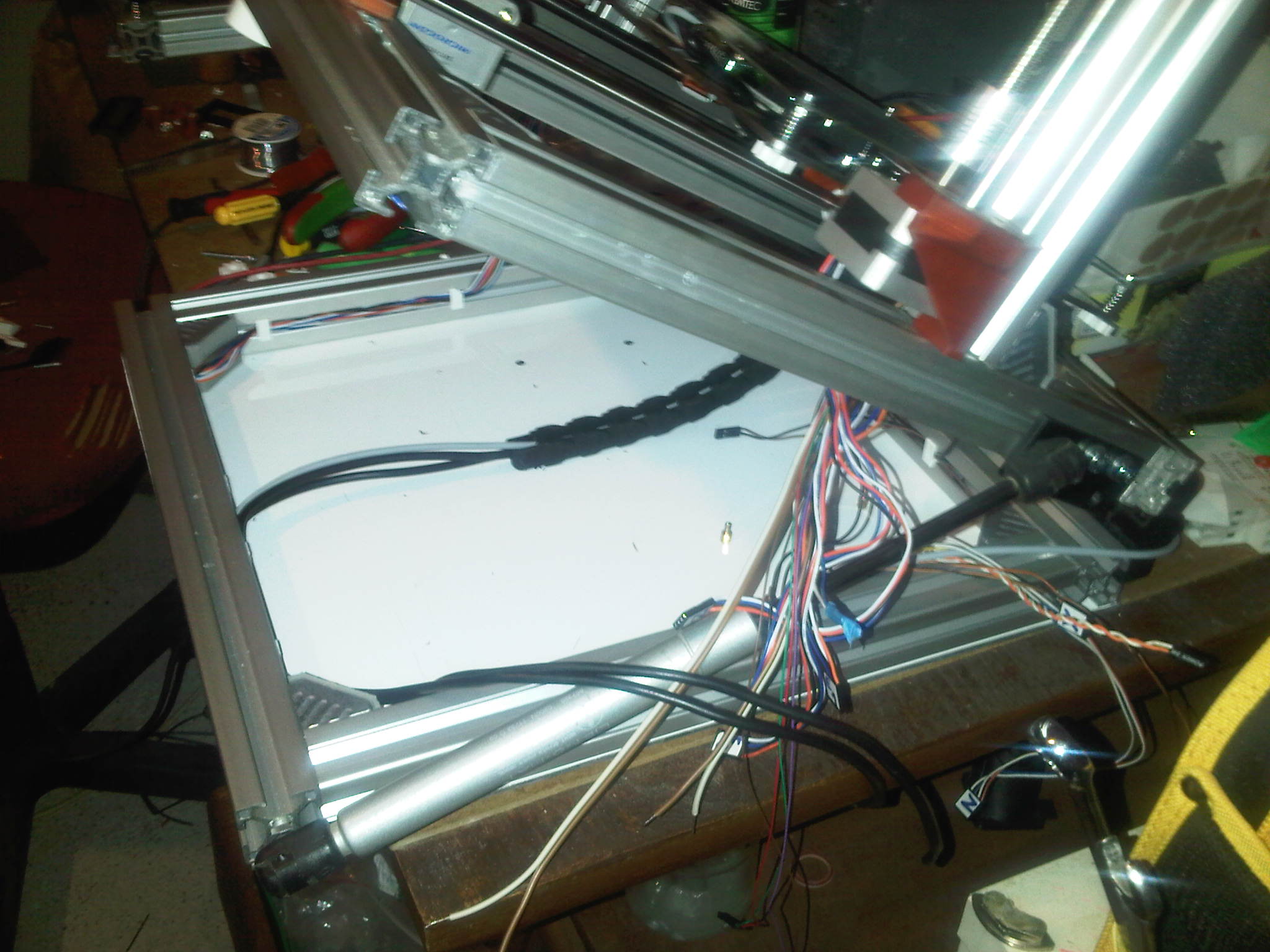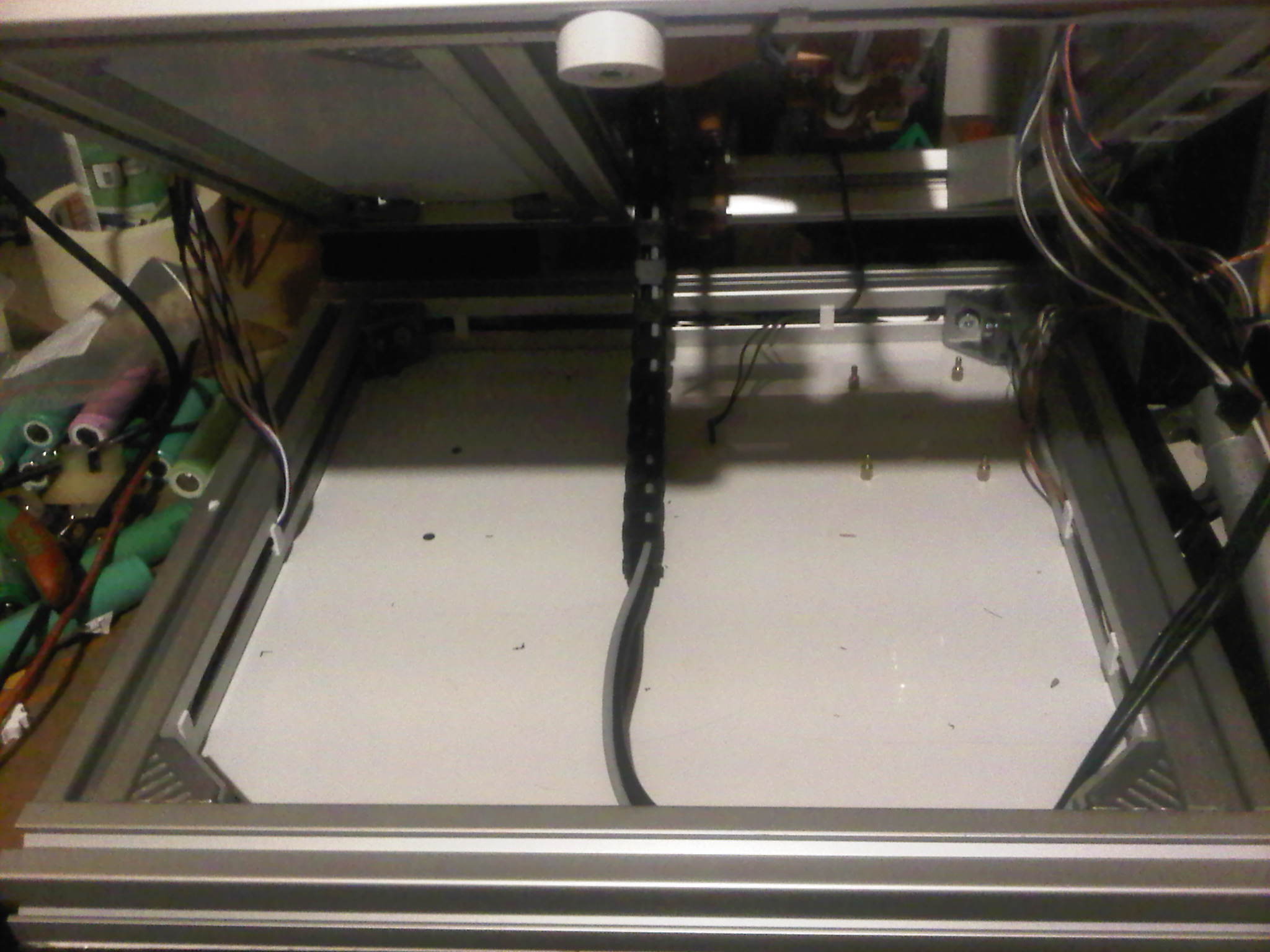 kabelaz k heatbedu ide tiez od spodku a pri zdvihnuti tlaciarne sa len jednoducho natiahne energoretaz a nic sa nedeje. ostatna kabelaz je zatial roztrusena. tiez sa nic nepohne, a vsetko ostava na svojom mieste, pretoze tlaciaren sa len zdvihne pod uhlom a nie kolmo.