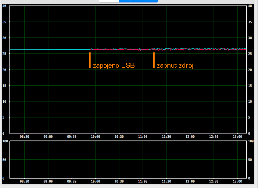 Zkusil jsem tedy vyměnit zdroje, abych viděl jejich vliv na měření teploty.