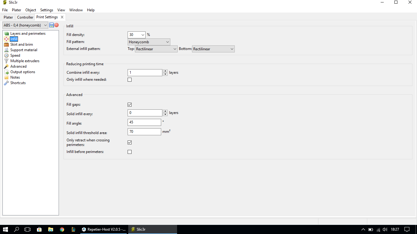 Koukám, že tam mám 15% takže to je asi málo předpokládám. Opravdu v tom nejsem ještě zběhlý, takže jsem nastavení Slic3r pobral tak nějak z internetu a youtube. Tak já zkusím přidat a pak oznámím výsledek, zatím děkuji.
