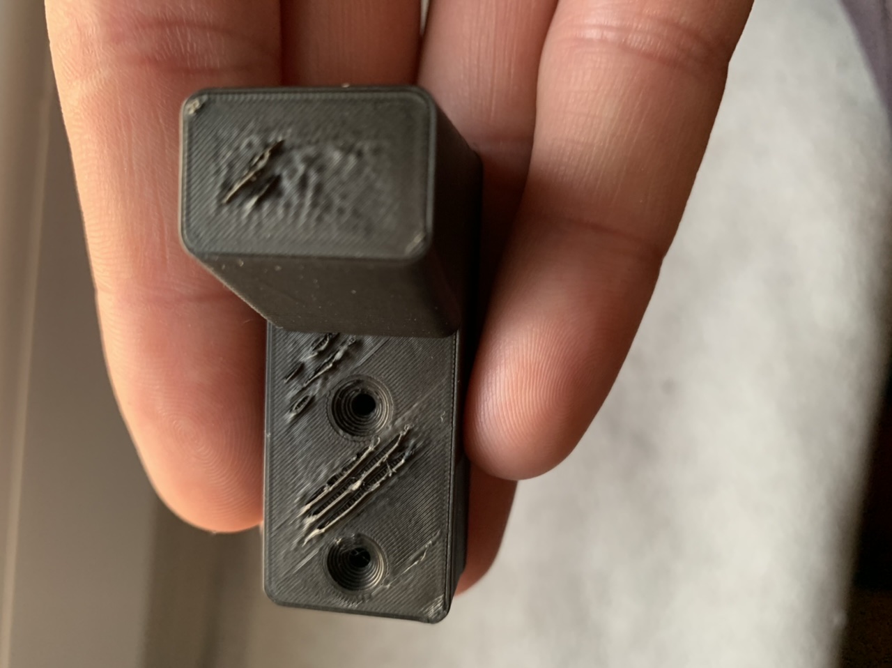 první vrstvu mám dobrou, to měnit rozhodně nechci, přitažení pomohlo, tisk je téměř bez vad, ještě zkusím trošku dotáhnout a uvidíme... ono jsem kvůli TPU změnil přítlak a asi jsem vrátil zpět špatně a obrousil strunu a zaprasil se...