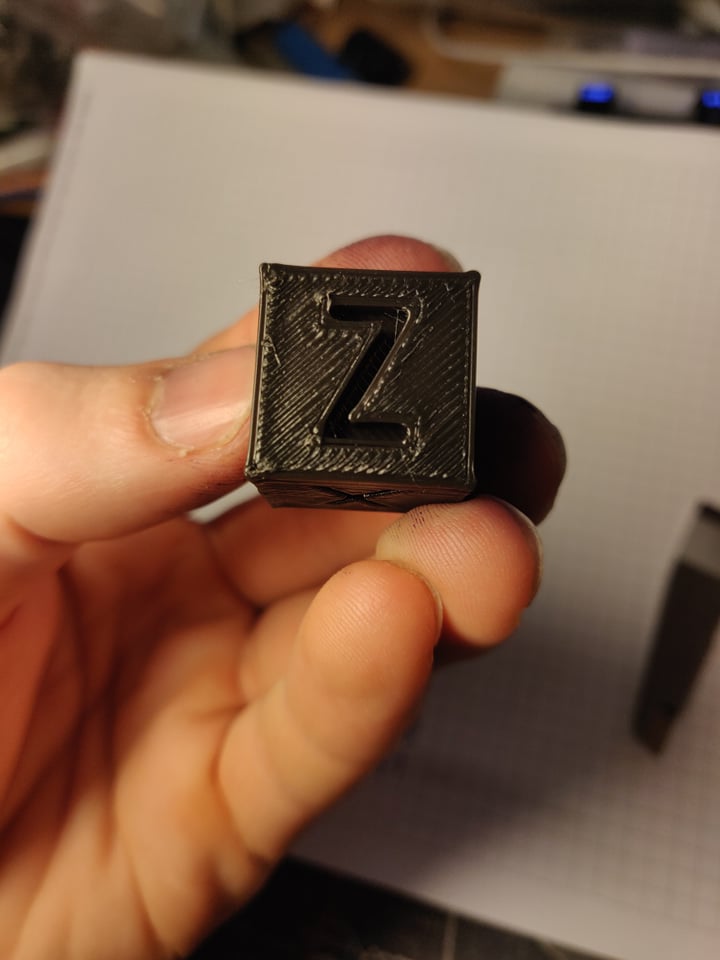 Určitě jste si všimli, že hrany nejsou homogenní, je to pro to, že jsem během tisku zkoušel měnit K faktor, první část je 0,22 pak je 0,42 a na konec je 0.