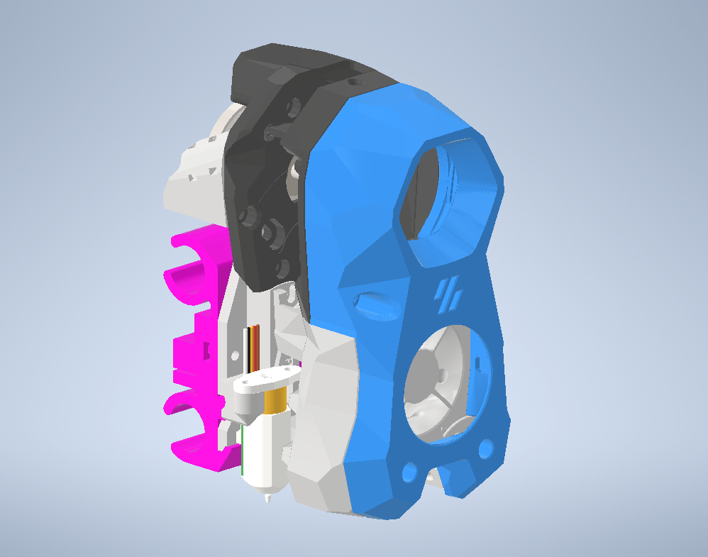 Celé to mám vytištěné z PETG a celkem žádnej problém. Jen cca 1mm se zdeformoval roh spodního dílu u heat bloku kde se kabely od topného tělíska ohýbají okolo toho dílu. Možná je to tím že mám malej hotend - Phaetus Dragonfly BMO, V6ku jsem nezkoušel. Jinak na SB tisknu pořád a celkem žádnej problém. Ofuk mě přijde hodně převymyšlenej ale dle reálných zkušeností to nepřináší až tak velkej benefit oproti rebelovskylýmu ofuku z R2ky. Jediný co mě štve je přívod kabeláže k extruderu, to by chtělo poladit aby to nevadilo klapce na uvolnění filamentu ale moje lenost je větší než to předělávat